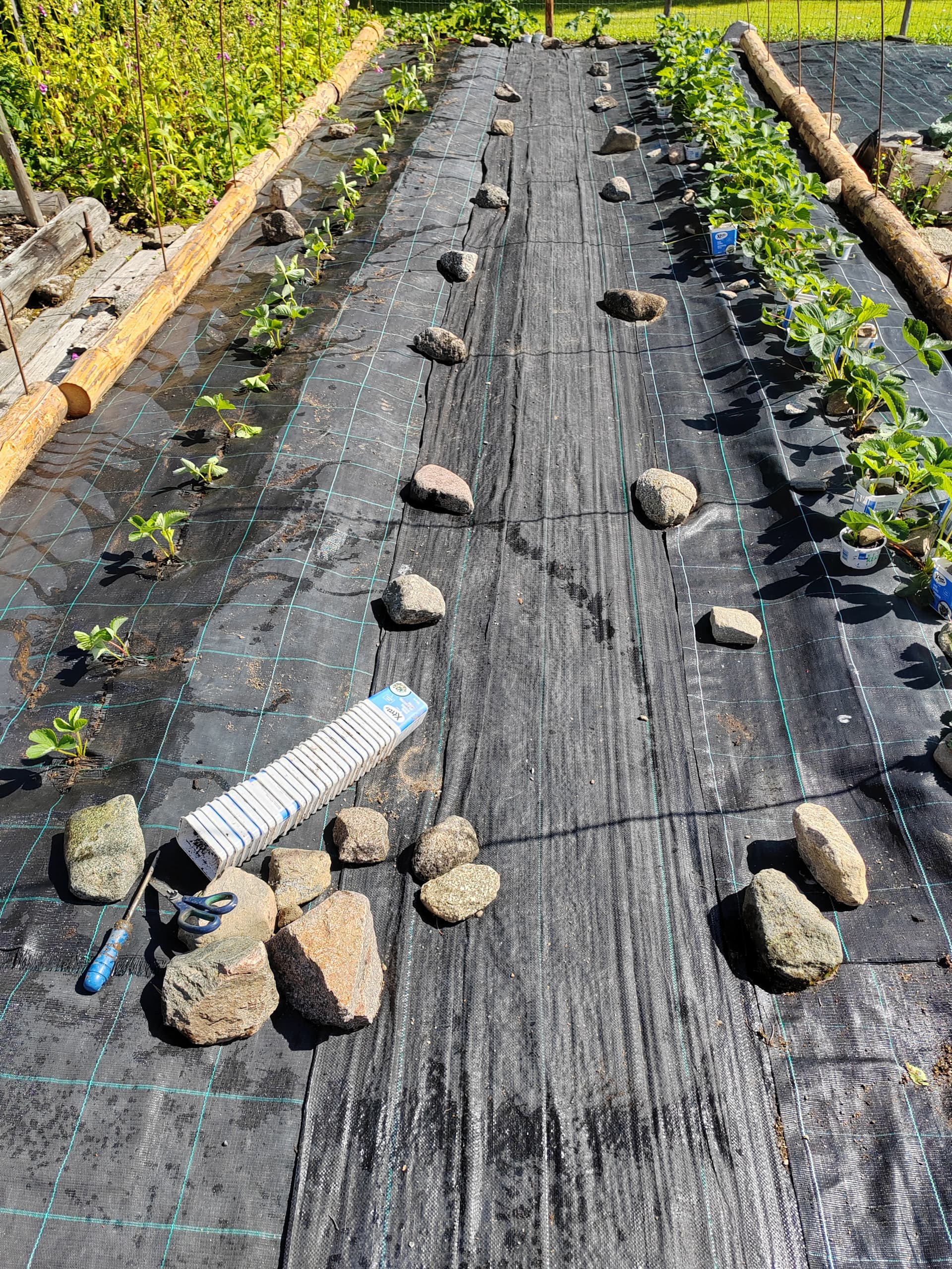 Kun torstaina satoi, pääsin eilen täyttämään ja kärräämään kanistereita. Sain 7x30 l ja 2x20 l., lisäksi joitain kastelukannullisia. Sadettahan tuli huimat 3 mm, edellinen sade tiistaina, 2 mm.