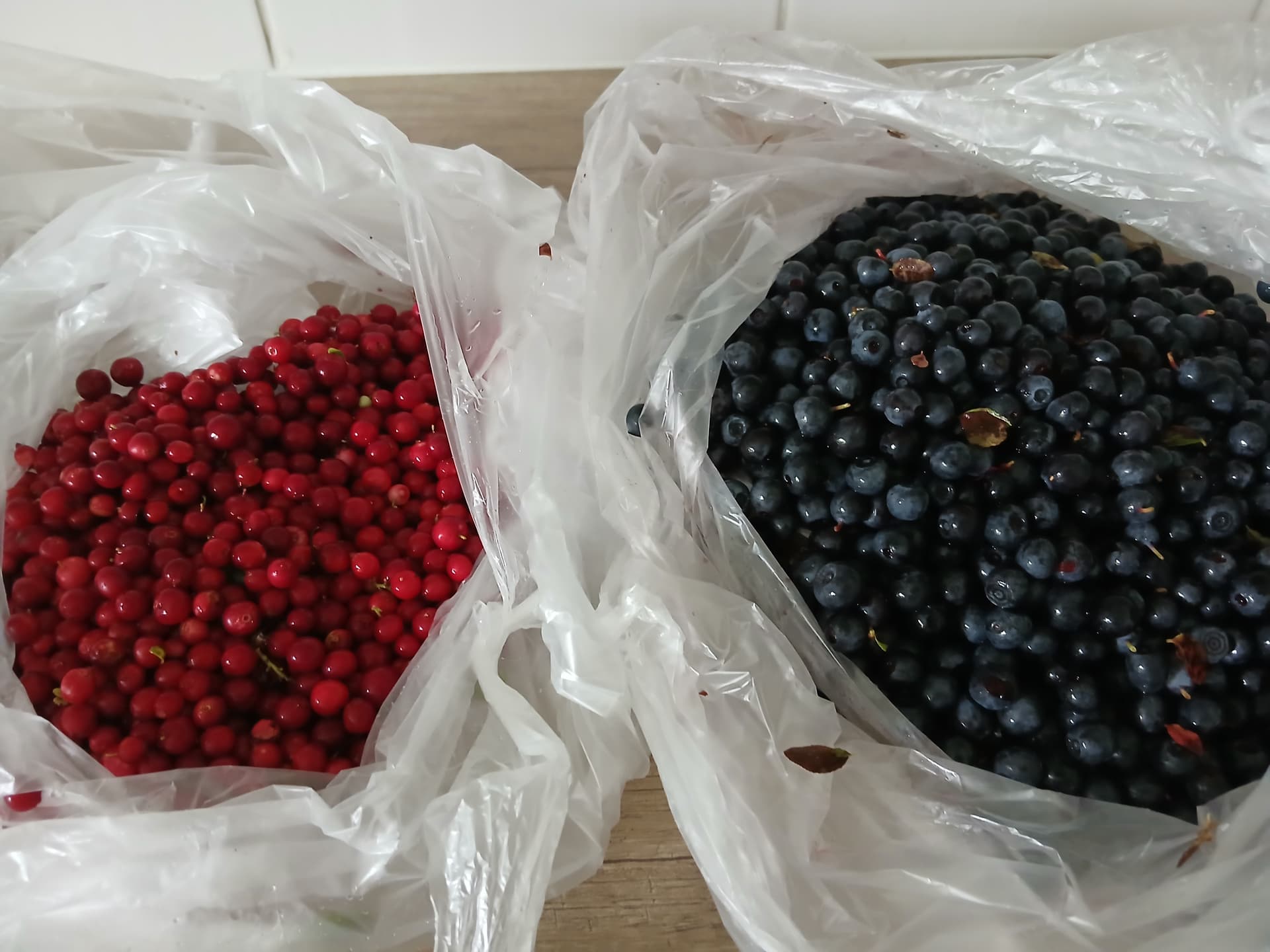 Tänään herukkahomma jatkuu, kuivakesä viisästyttää kypsymistä, olivat pieniä ja kovia, kuten mustikat ja vatutkin.