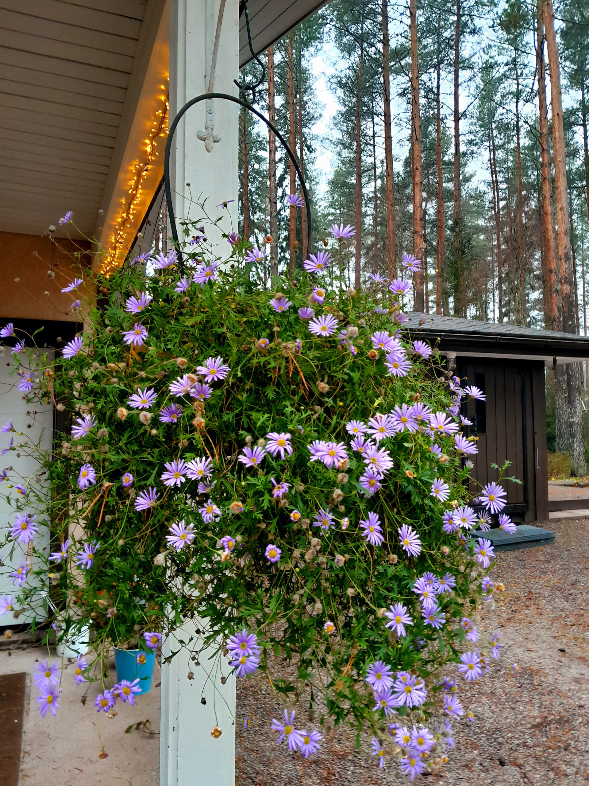 Terassikalusteet pitää vielä laittaa nippuun ja talon seinustalla on joitain tyhjiä isoja ruukkuja, mitkä pitää viedä kasvihuoneeseen talveksi, niin ne ei ole lumen kolauksen tiellä. Toivottavasti sitä lunta ei kuitenkaan ihan vielä tarvitse alkaa kolaamaan.