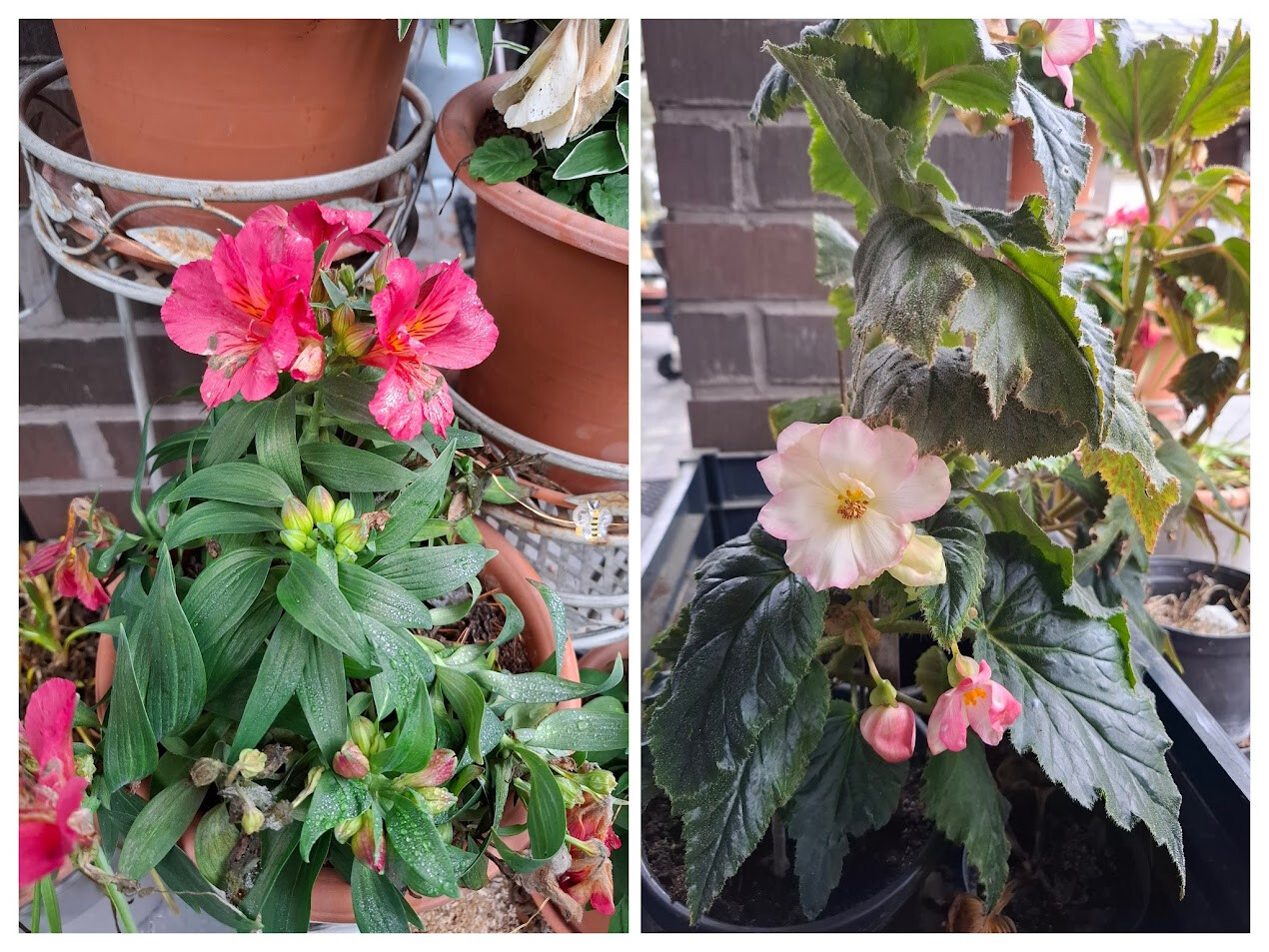 Mulla on taaskin jäänyt pihan talvikuntoon laitto myöhäiseksi. Lauantaina sain kasvihuoneesta siivottua viimeiset vihreät chilien varret pois ja aloin kantamaan sinne talvivarastoitavia kukkapurkkeja ja muuta tavaraa. Eilen tuli sitten kiire siivota talvisäilytettävät juurakot varastoon, kun yöksi oli luvassa kunnon pakkanen. Prinsessaliljat ja mukulabegoniat kukkivat vieläkin takapihan terassin vieressä, joten jouduin repimään niistä varret irti, kun ei ne pimeässä varastossa menestyisi.Noita ei ole kasteltu yli kuukauteen ja silti ne vaan on kukkineet ja kasvattaneet uusia nuppujakin.