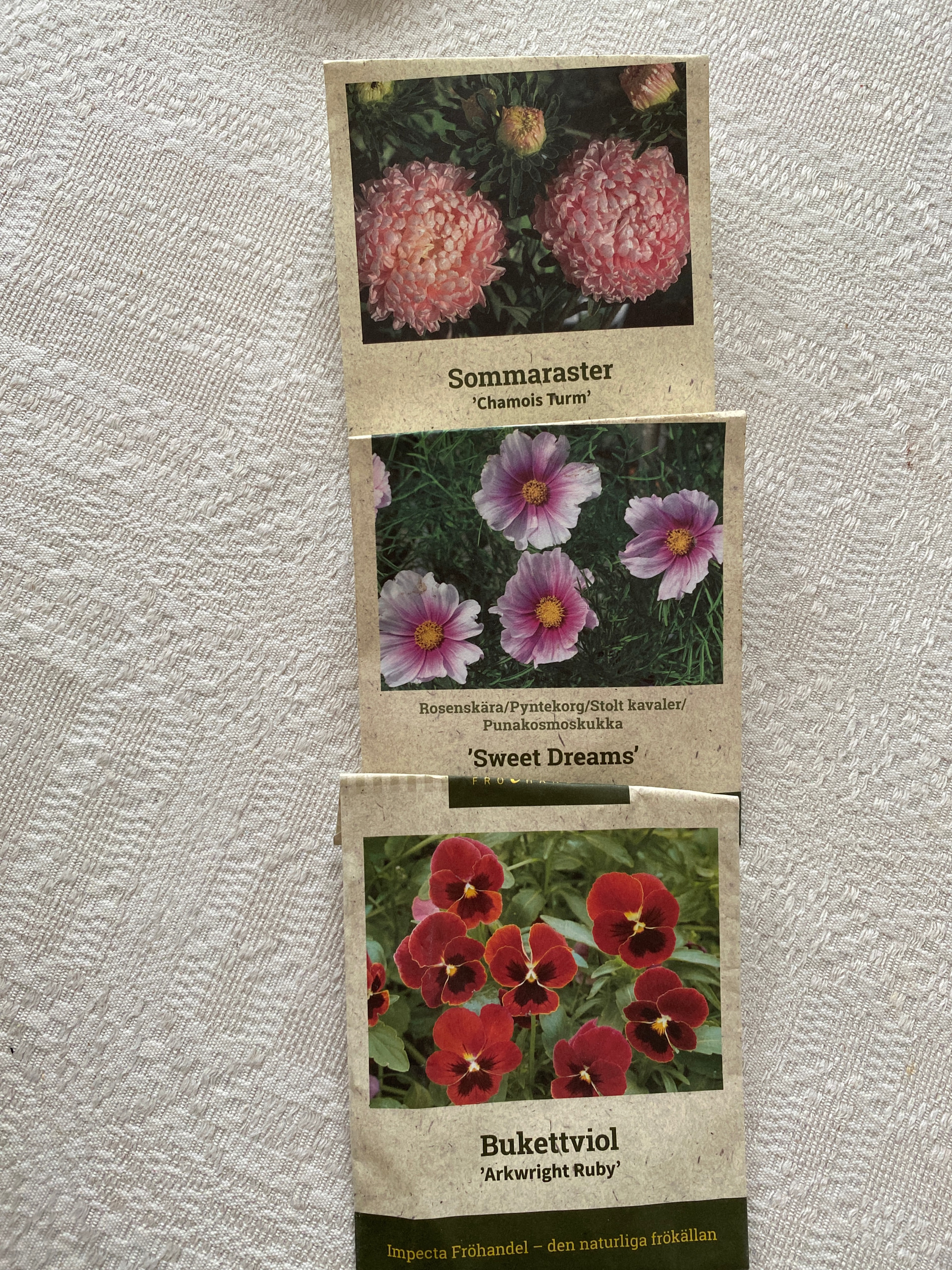 Etsin raivokkaasti kesäkukkasiemenpusseistani sellasia jotka olis “melkeen pakko” kylvää nyt.