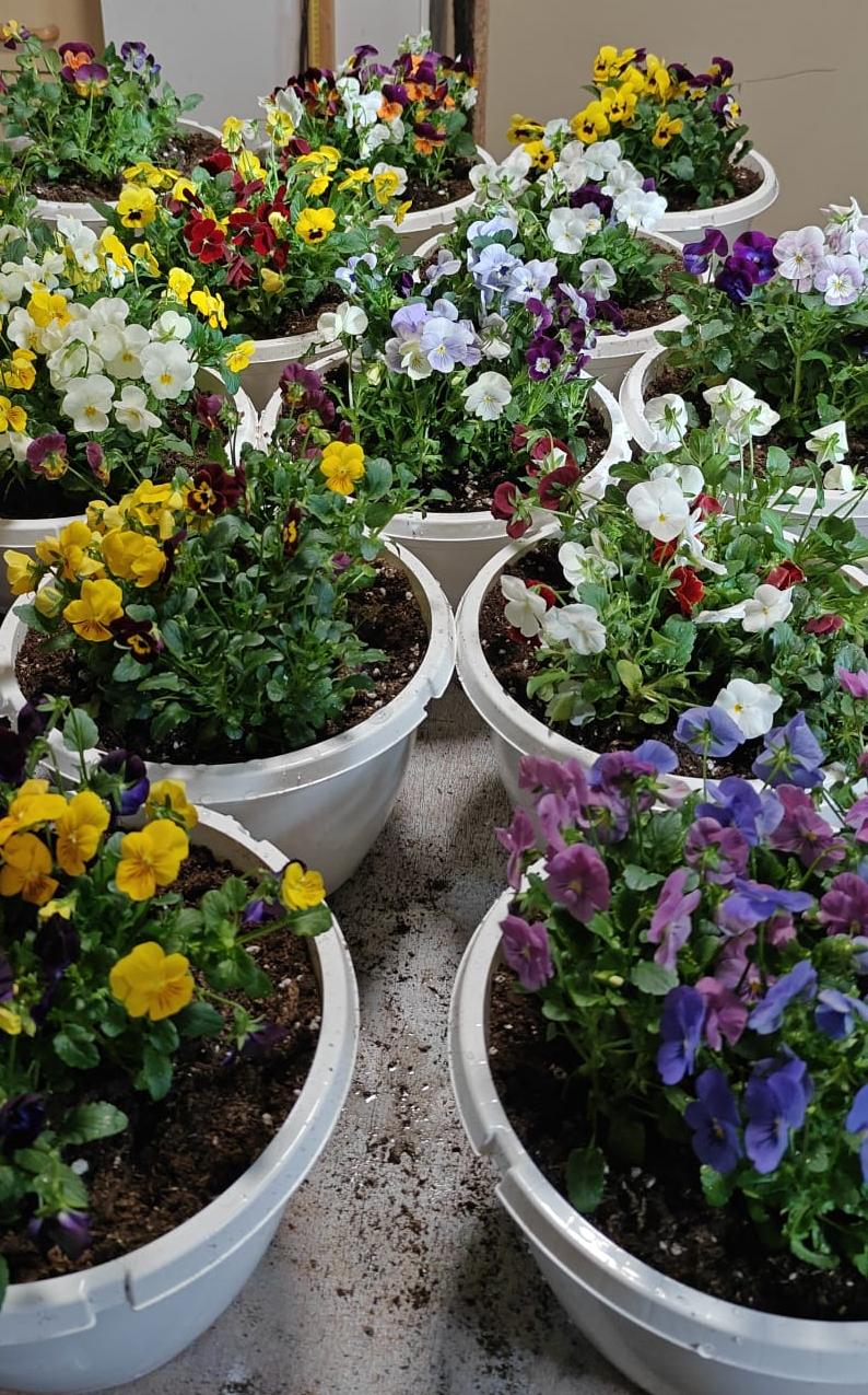 Ne on vielä pari viikkoa tai säiden mukaan kasvihuoneen sisällä olevassa taimihuoneessa karaistumassa viileyteen. Säiden mukaan ne pääsee sitten ulos tai uusiin koteihin. Viime vuonna sain orvokkiamppelin itselleni ulos jo maaliskuun kolmannella viikolla.