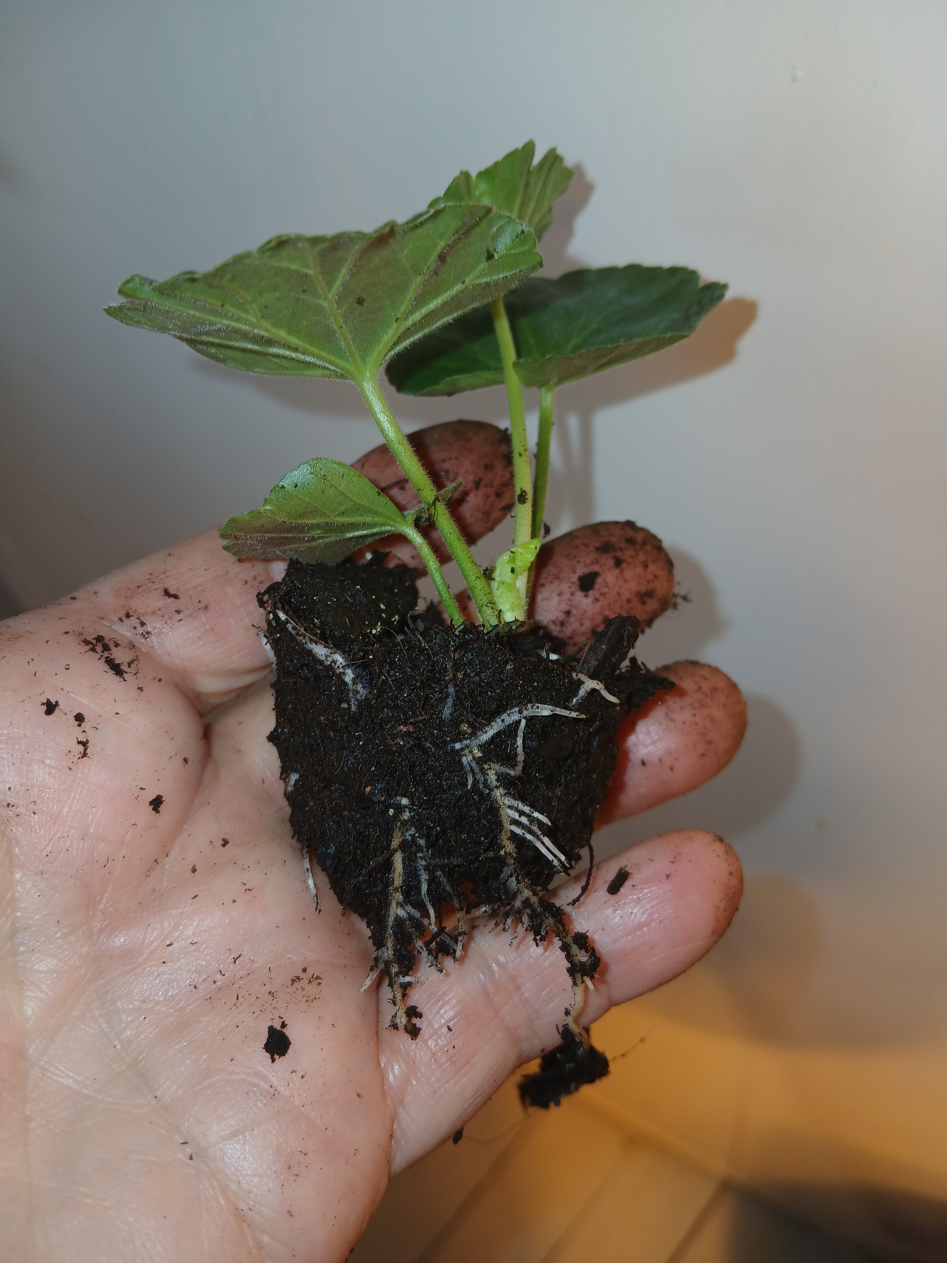 Siirsin pelargonien juurtuneet pistokkaat isompaan kennostoon.