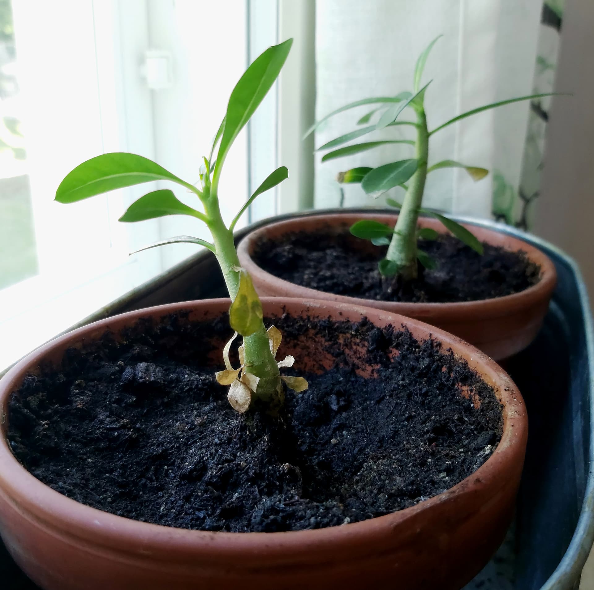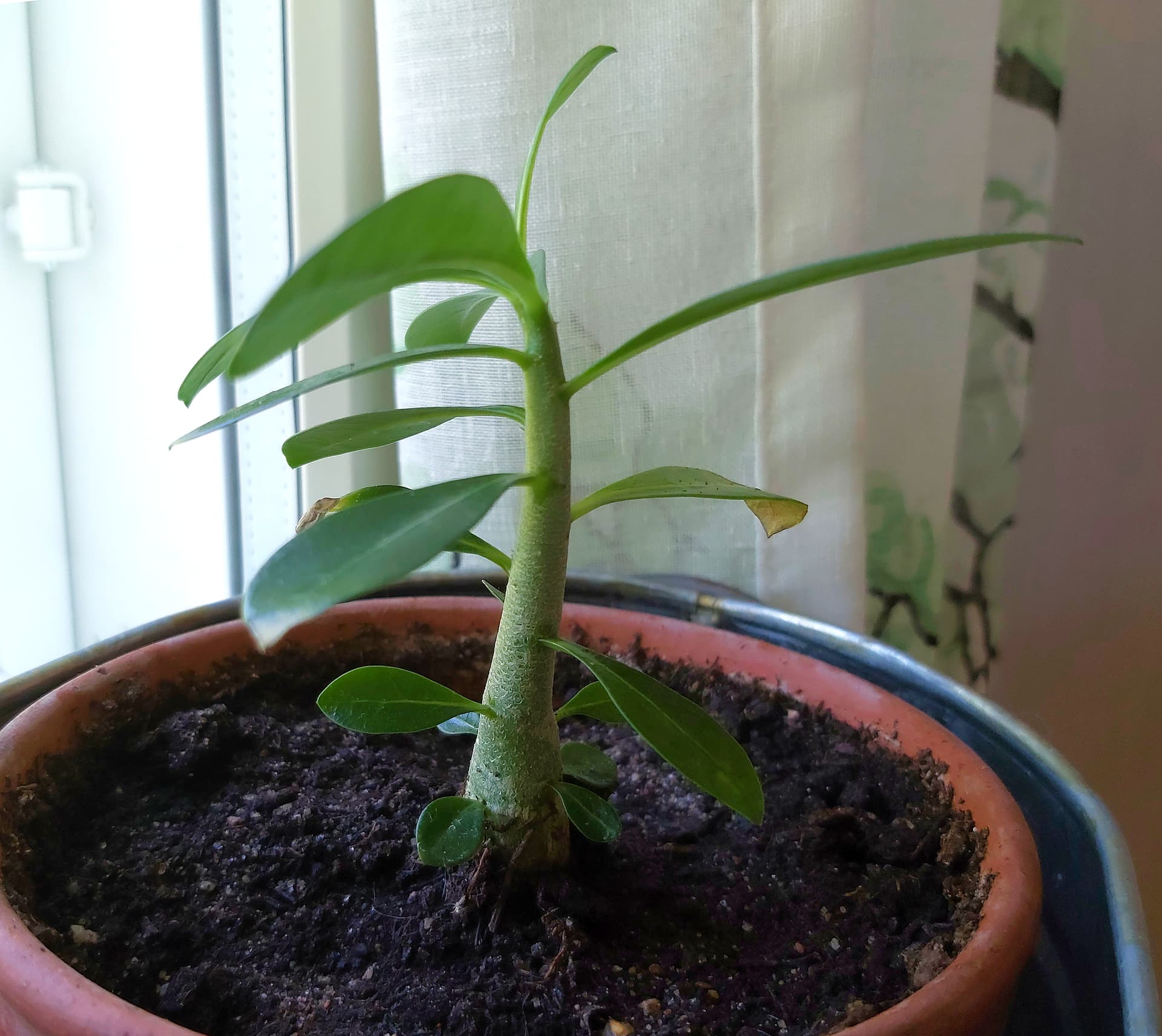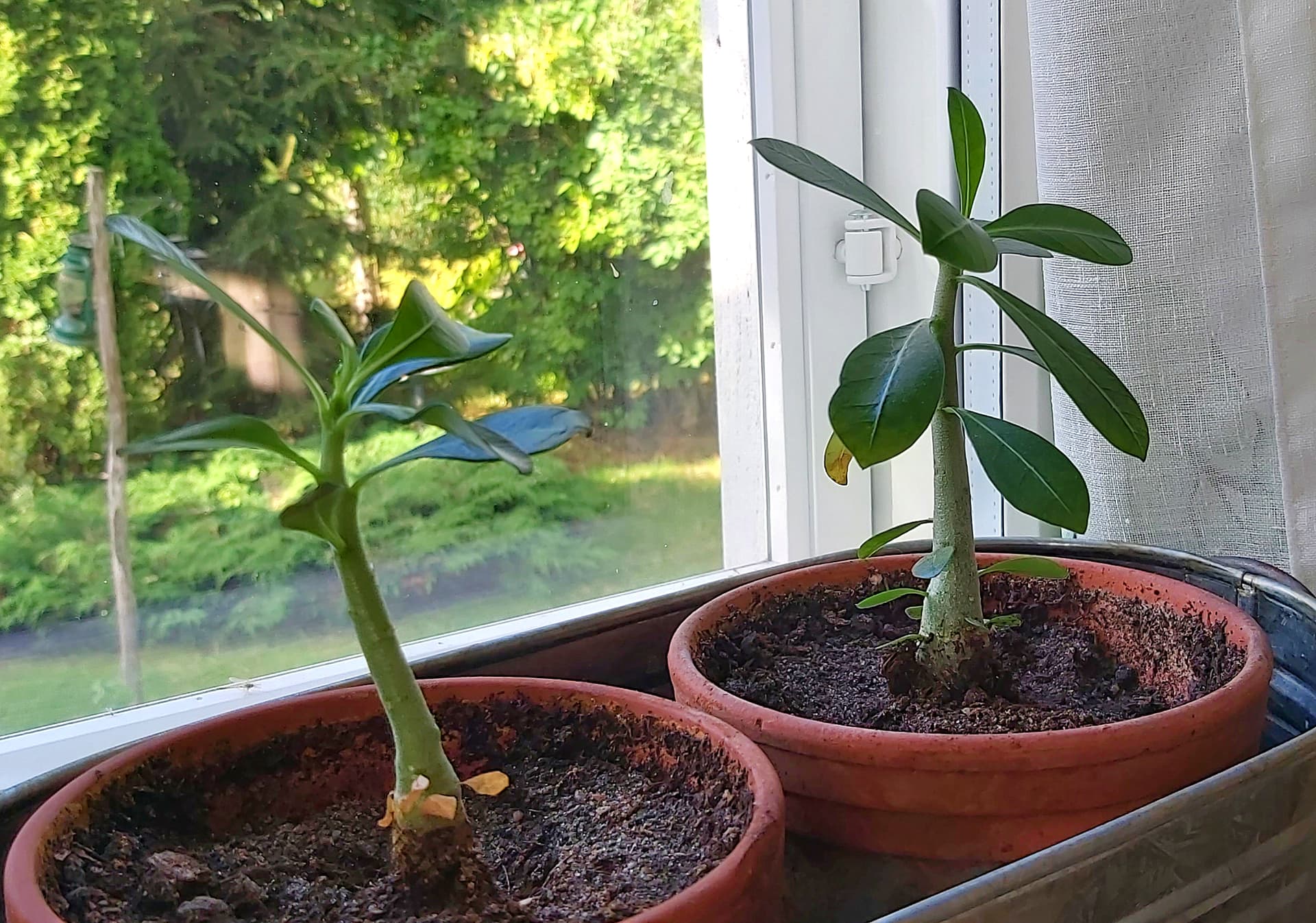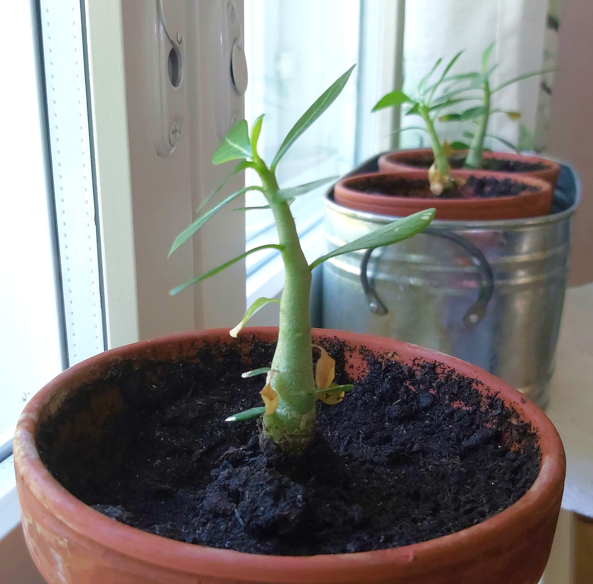 Täällä ilmoittautuu yksi adeniumien kiduttaja. Sain yli kymmenen vuotta sitten joltain penttiläiseltä siemeniä ja minulla kasvaa niistä neljä kasvia. Ne on olleet todella huonolla hoidolla itään ja länteen suuntautuvilla ikkunoilla ja kastelukin on ollut satunnaista ja mullat vaihtamatta. Ne on elossa ja kasvaneet rumiksi eivätkä ole kukkineet. Joka kevät olen suunnitellut niiden ulos vientiä, mutta se aina kesällä unohtuu. Ehkä ensi vuonna muistan vaihtaa mullat ja viedä ainakin kaksi kokeeksi ulkoilemaan.