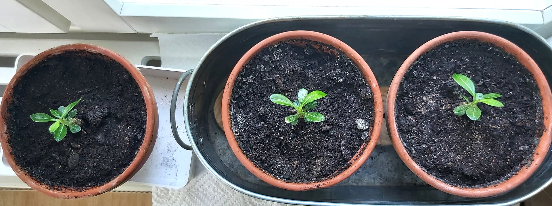 Heippa! Kiva nähdä täällä muidenkin siemenestä kasvatettuja aavikkoruusuja! Minulla on kaksi kpl 3,5 kk:n ikäistä aavikkoruusua. Lisäksi kylvin juuri muutamia lisää. Ne ovat juuri alkaneet itää :).