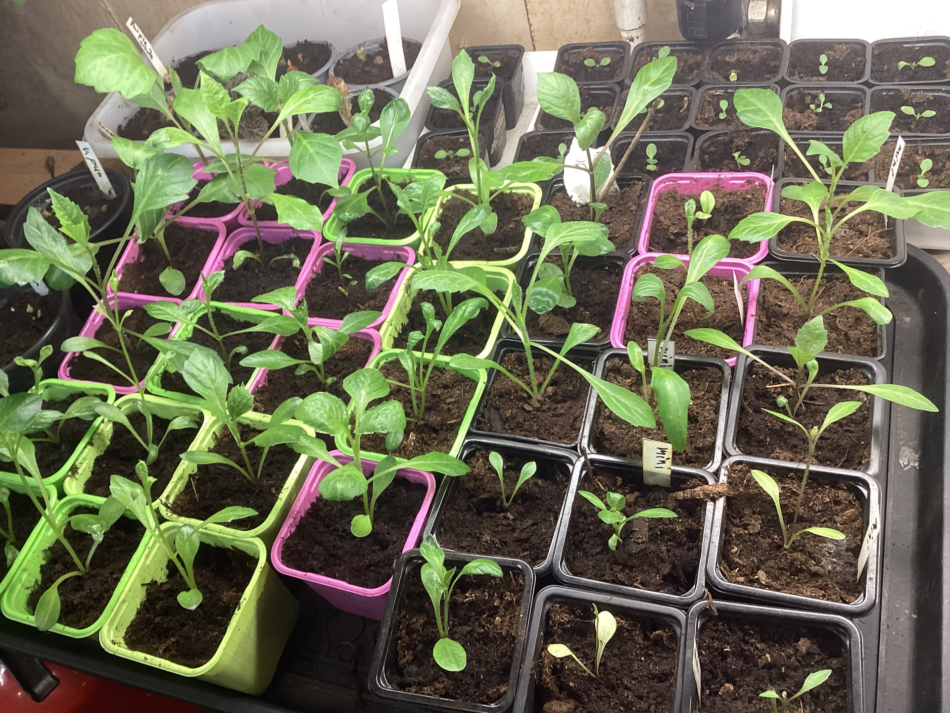 Kylvin 28.2. siemenkirjeestä saadut puolikerrotun keltaisen tummalehtisen daalian siemenet ( kiitos Genesee). 4 siementä kylvin omiin pikkupotteihinsa ja 2 tainta sain aikaiseksi. Nyt kuukausi kylvöstä vaihdoin taimille vähän isommat ruukut.