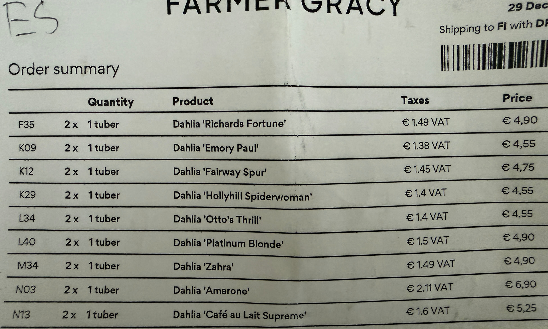 Joulukuun lopussa tilasin Farmer Gracy:sta daaliajuurakoita tälle keväälle.