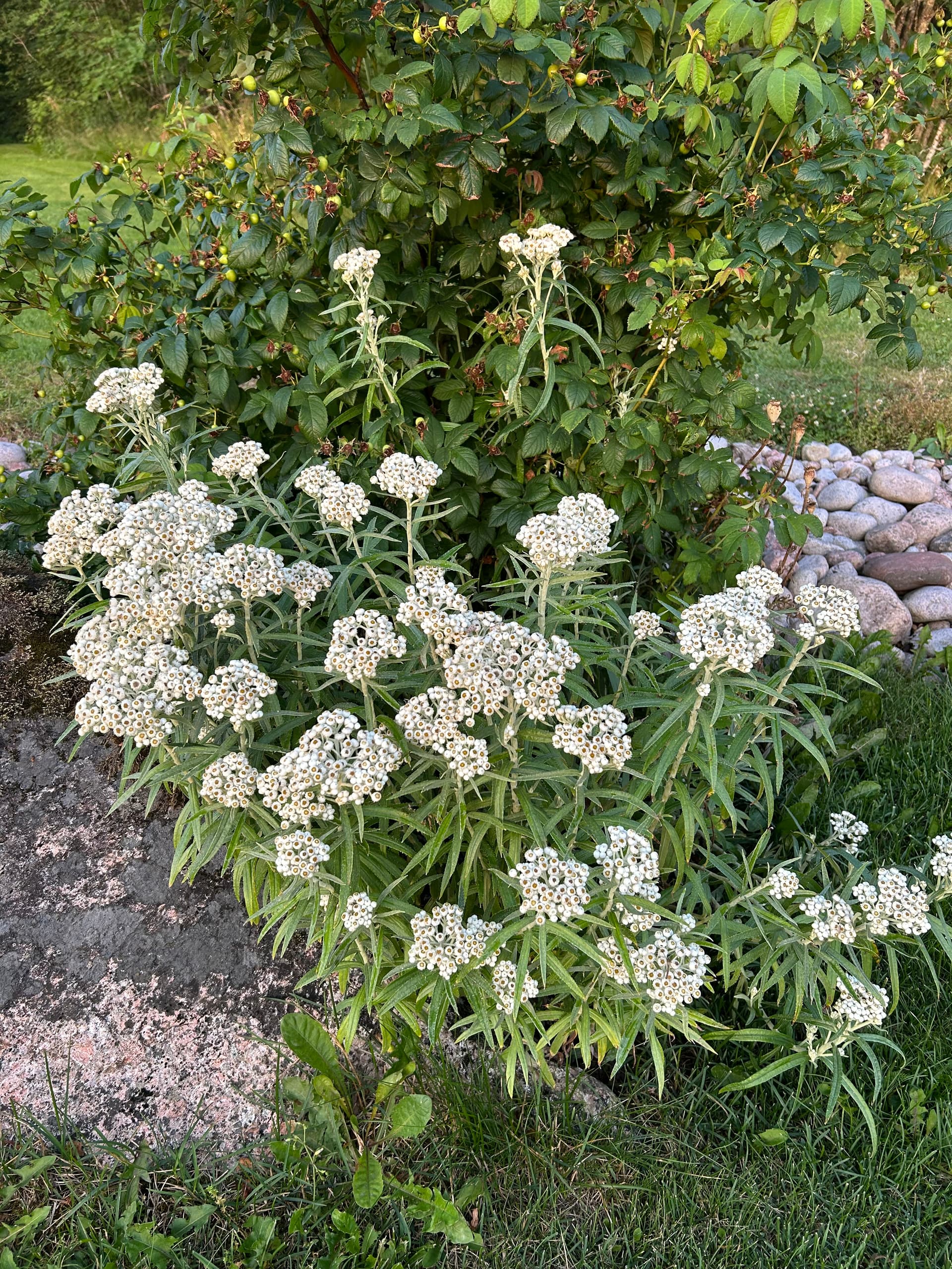 Jep. Tosiaan toissa kesänä oli yksi kukkavarsi, eli se yksi ainokainen taimi, ja viime kesänä tuo mitä näkyi kuvassa, ja nyt tuo puska. Eli aika hyvän kuvan saa kyseisen kasvin elinvoimaisuudesta ja leviämiskyvystä!
