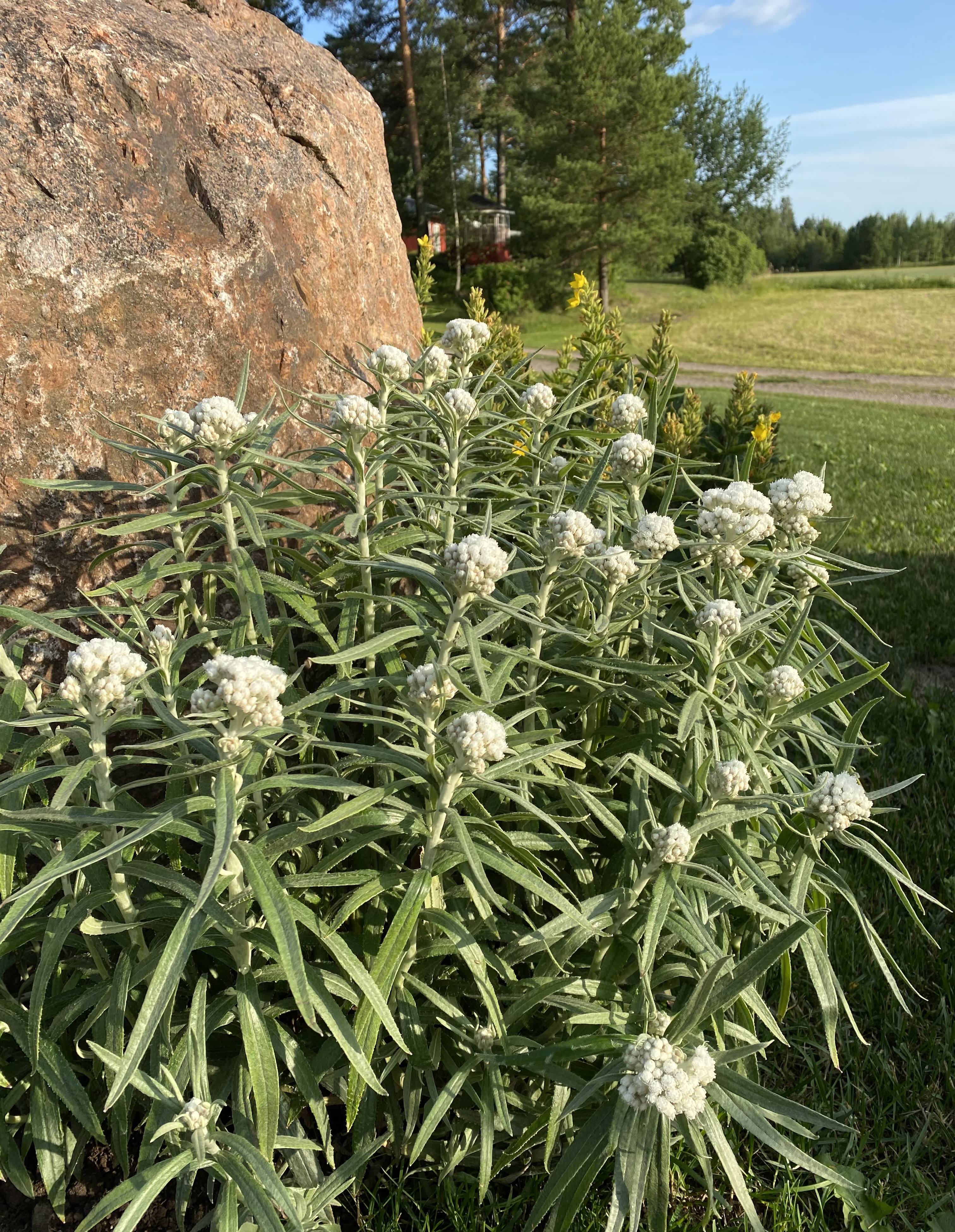 Tässä minun jäkkäröitä. Koko iso puska on peräsin yhdestä lahjaksi saadusta pikku taimesta. Pärjää huonossa ja kuivassakin maassa, ja leviää vauhdilla. Kukkii ikuisuuden ja toimii myös leikkokukkana.