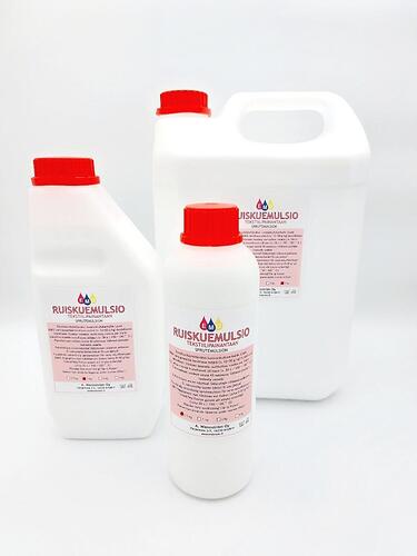 Emo ruiskuemulsioa suihkepullolla suihkuttelin paineella pinnan märäksi, pikkukiviä lehtien painona. 6 m pitkä kangas oli nurmikolle levitetty. Anarkistinen epätarkka lopputulos😁