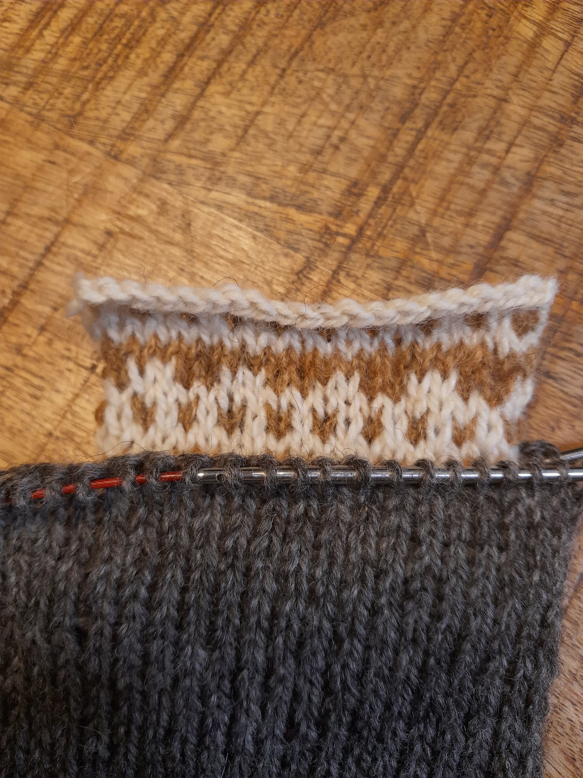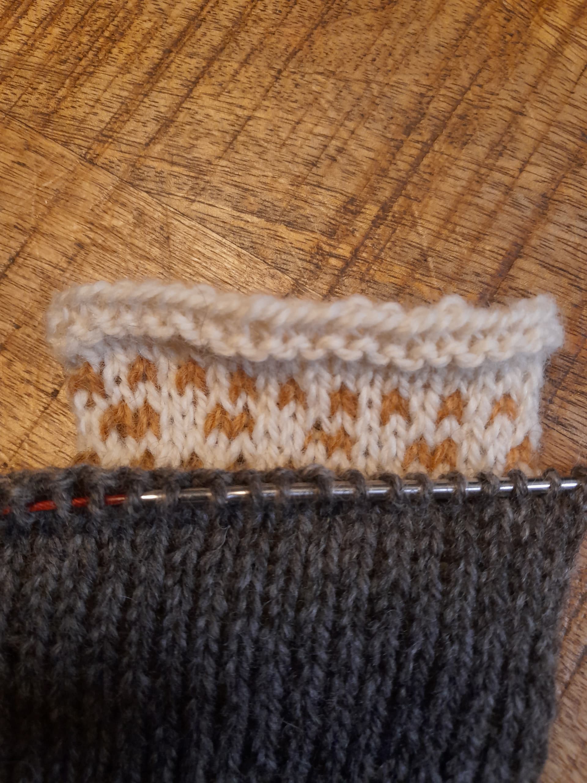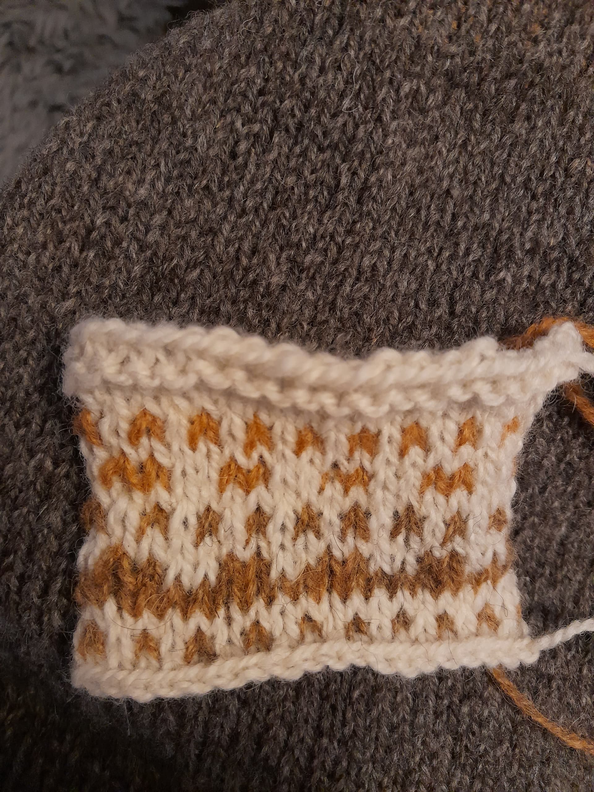 En nyt varsinaisesti nauti kirjoneuleesta kolmella värillä, eikä varsinkaan pitkällä juoksulla.