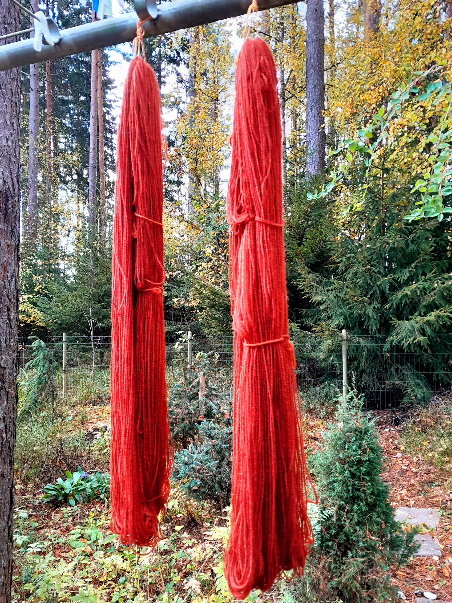 Värjäilin viime yönä lankoja. Kolmelta yöllä lopetin. Työt kiusaa harrastuksia ja ihan pöllönrytmissä mennään.