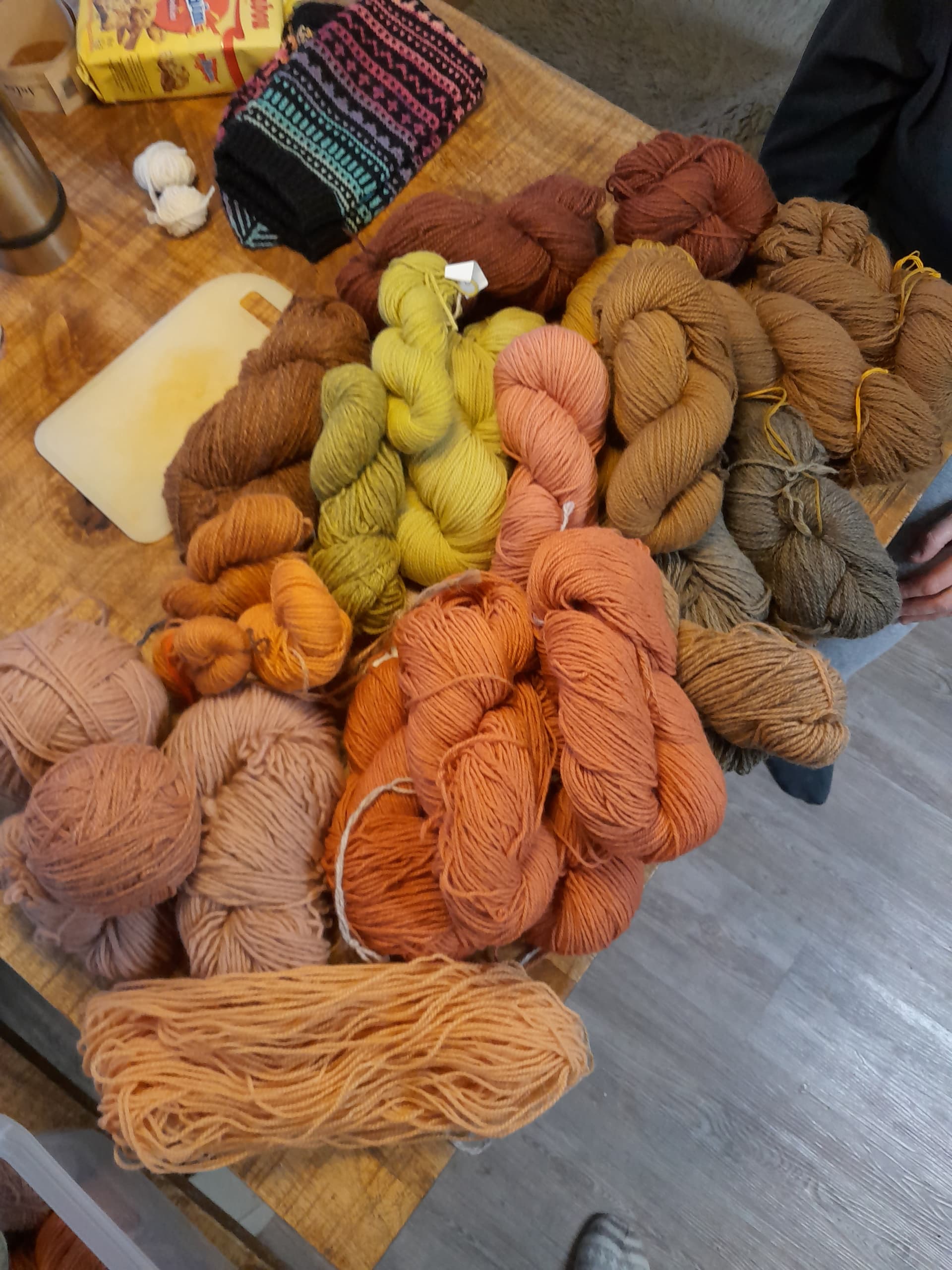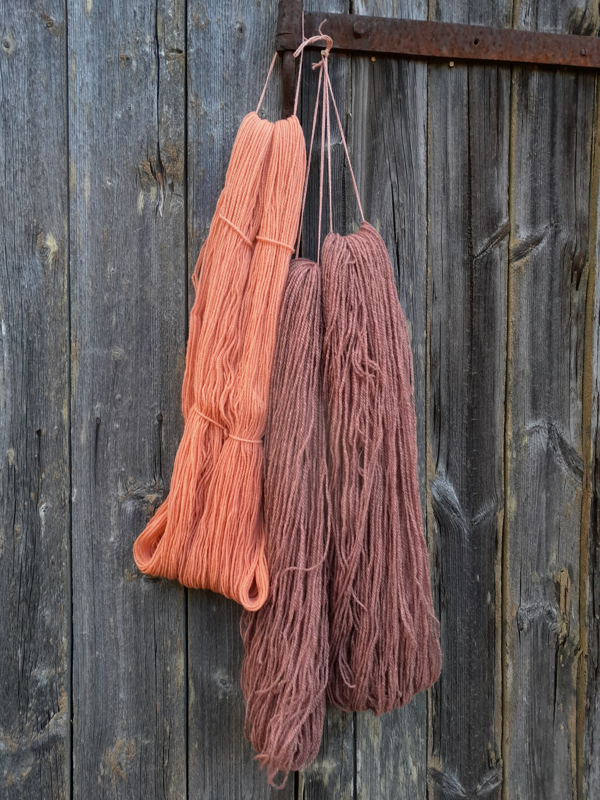 Vuosia sitten käly harrasti kasvivärjäystä, sain häneltä lankoja. Yksi vyyhti oli tummanruskea, en muista, millä värjätty. Sipulinkuoria keräsin hänelle, varmaan muutkin.