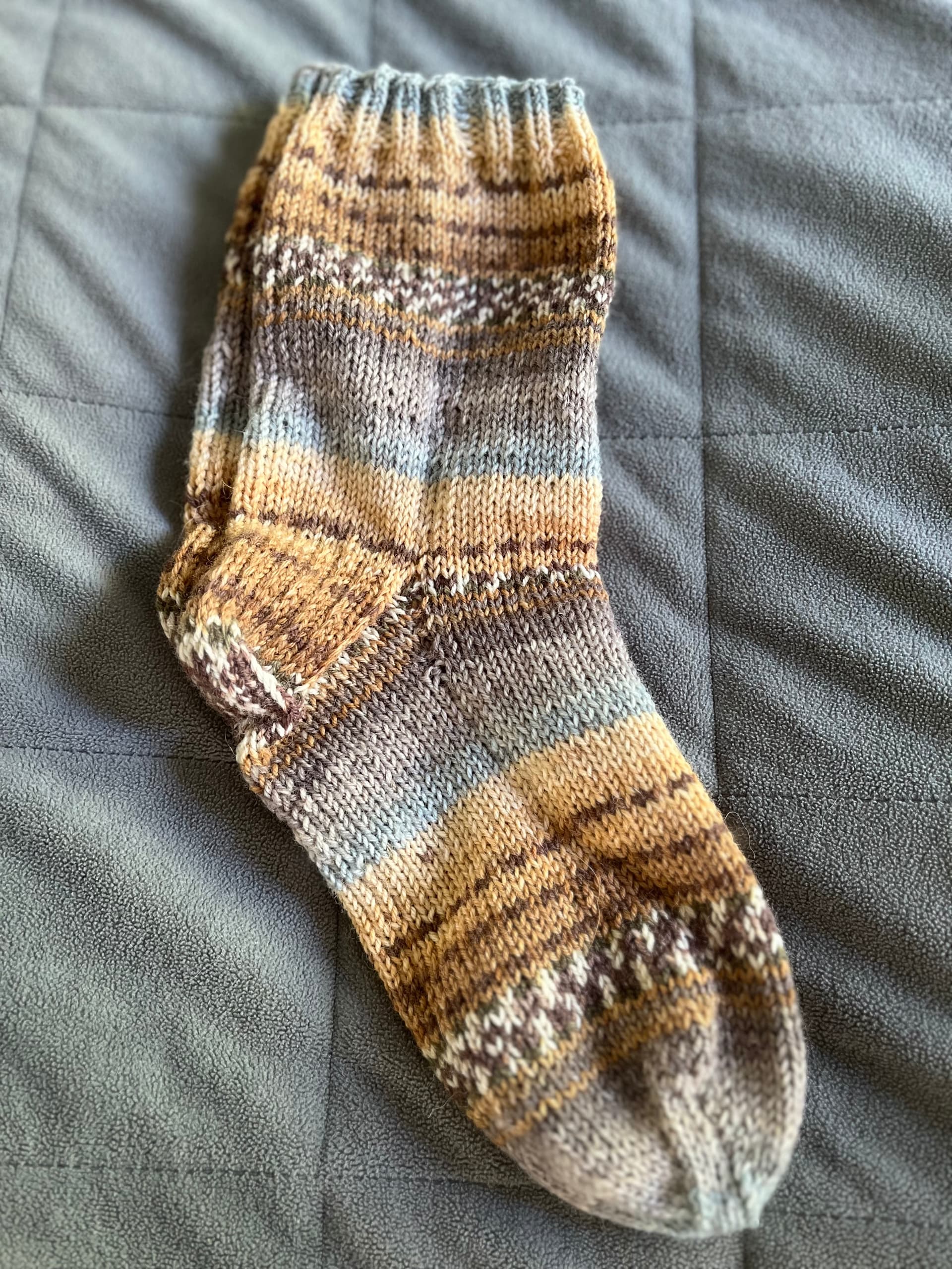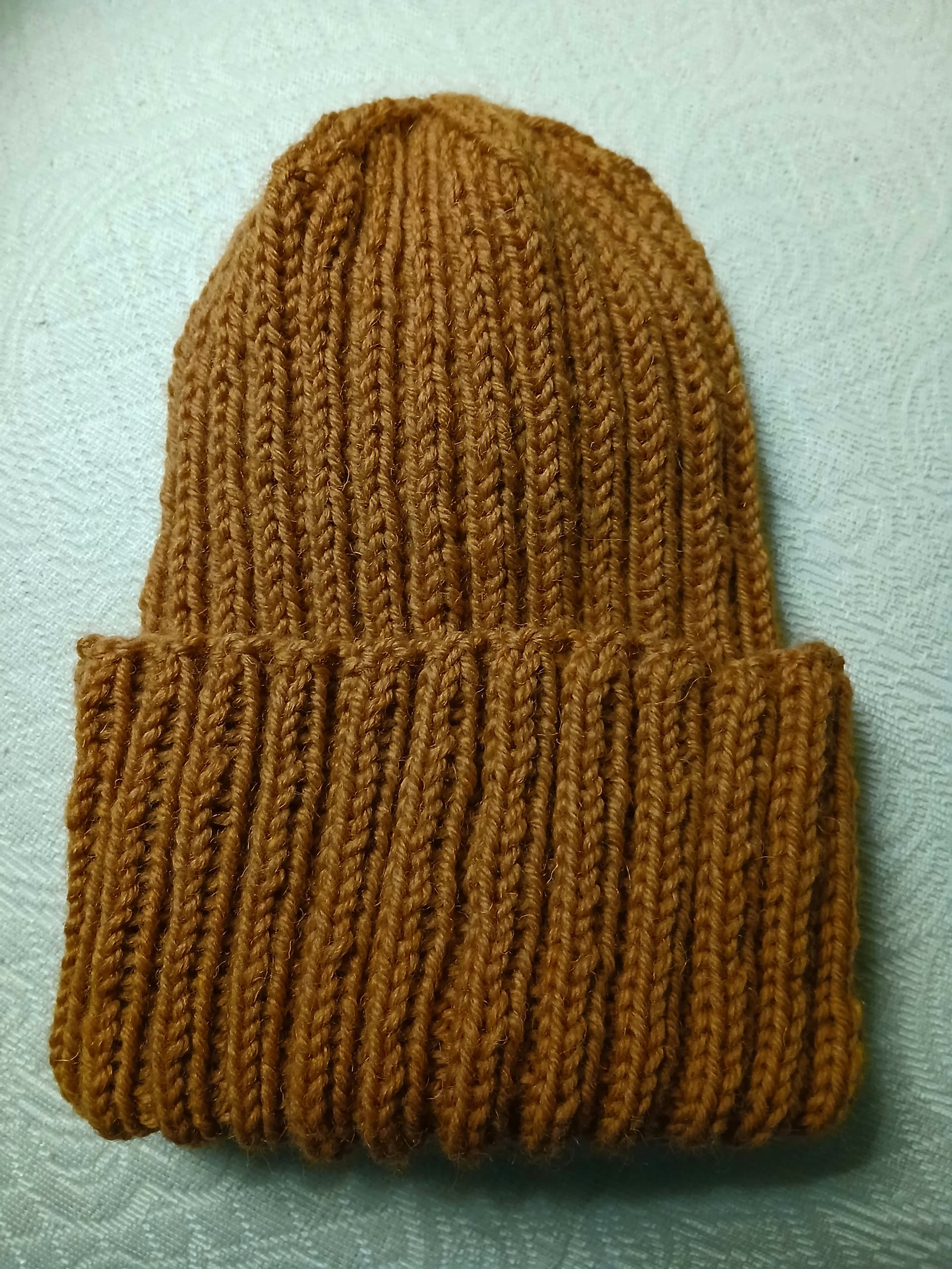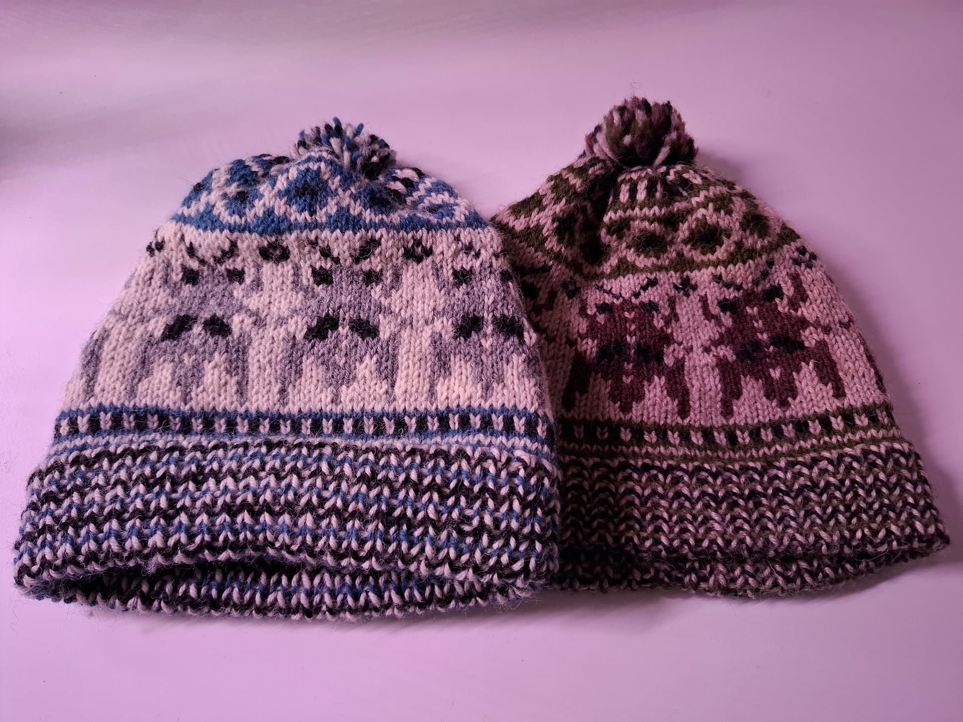 Kuvassa siniharmaa pipo on se uusi ja ruskea sävyinen on se vanha. Vanhassa on myös vihreää, mutta kuvasin niin hämärässä valossa, että se ei oikein erotu.