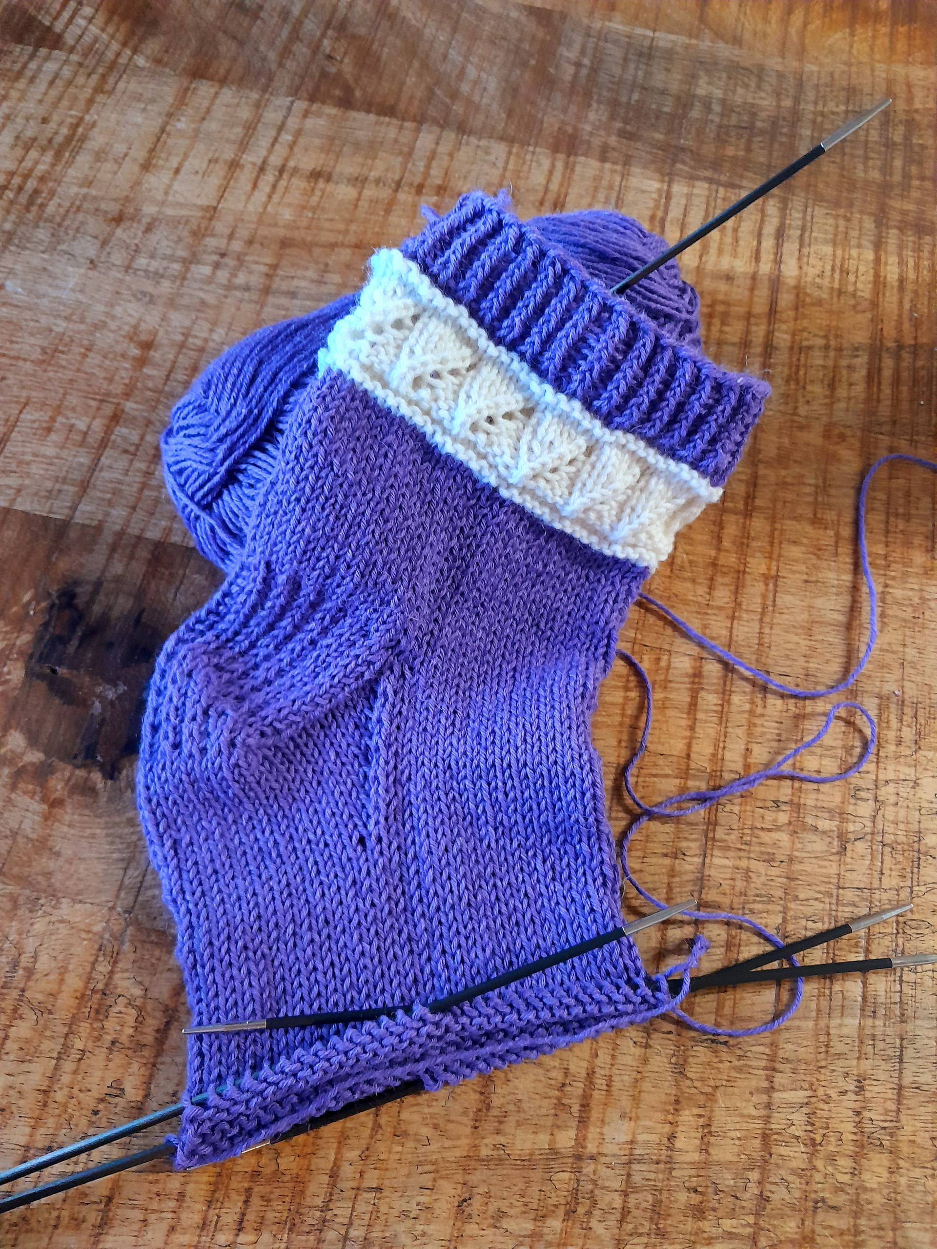 On muuten lystikkään näköiset sukat tennarien kanssa, toimisi myös puuvillalangasta tai sekoittesta varmaan kivasti. ![]()