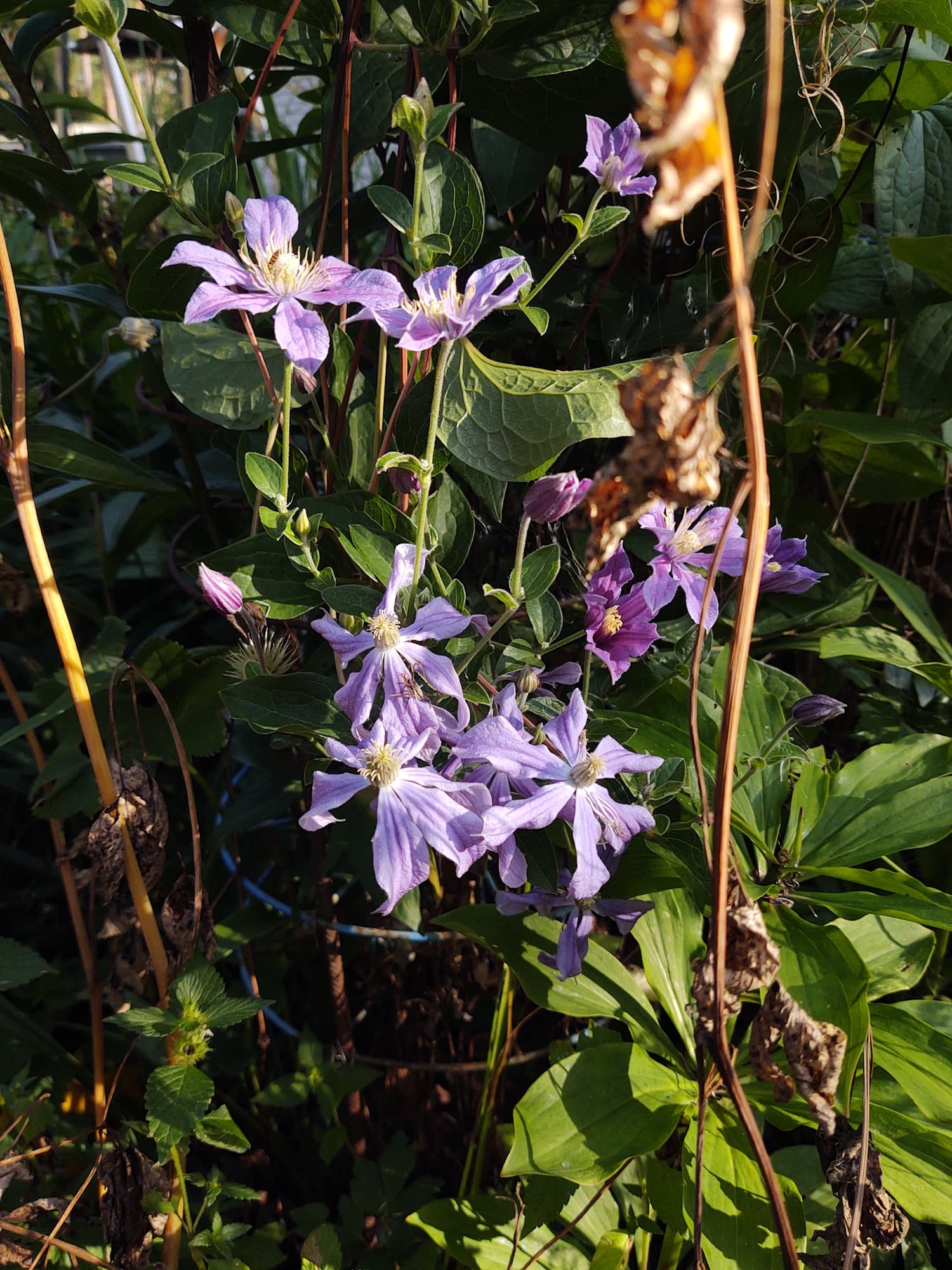 Justiinsa, mulla on pari hyvin pientä virallista tukilärpäkettä hommattu kärhöntaimille (joista ei vielä näy merkkiäkään) ja pioneille, lienevät n.5-10e kpl’e plus keppiviritelmät. Kepeistä tuskin pääsee eroon tuulisessa pihassa mutta narut tahtovat pettää heti kun vähän napakammin tuivertelee. Tuohon verkkoon kun kepin porskauttaa niin pysyy se ainakin jonkuaikaa.