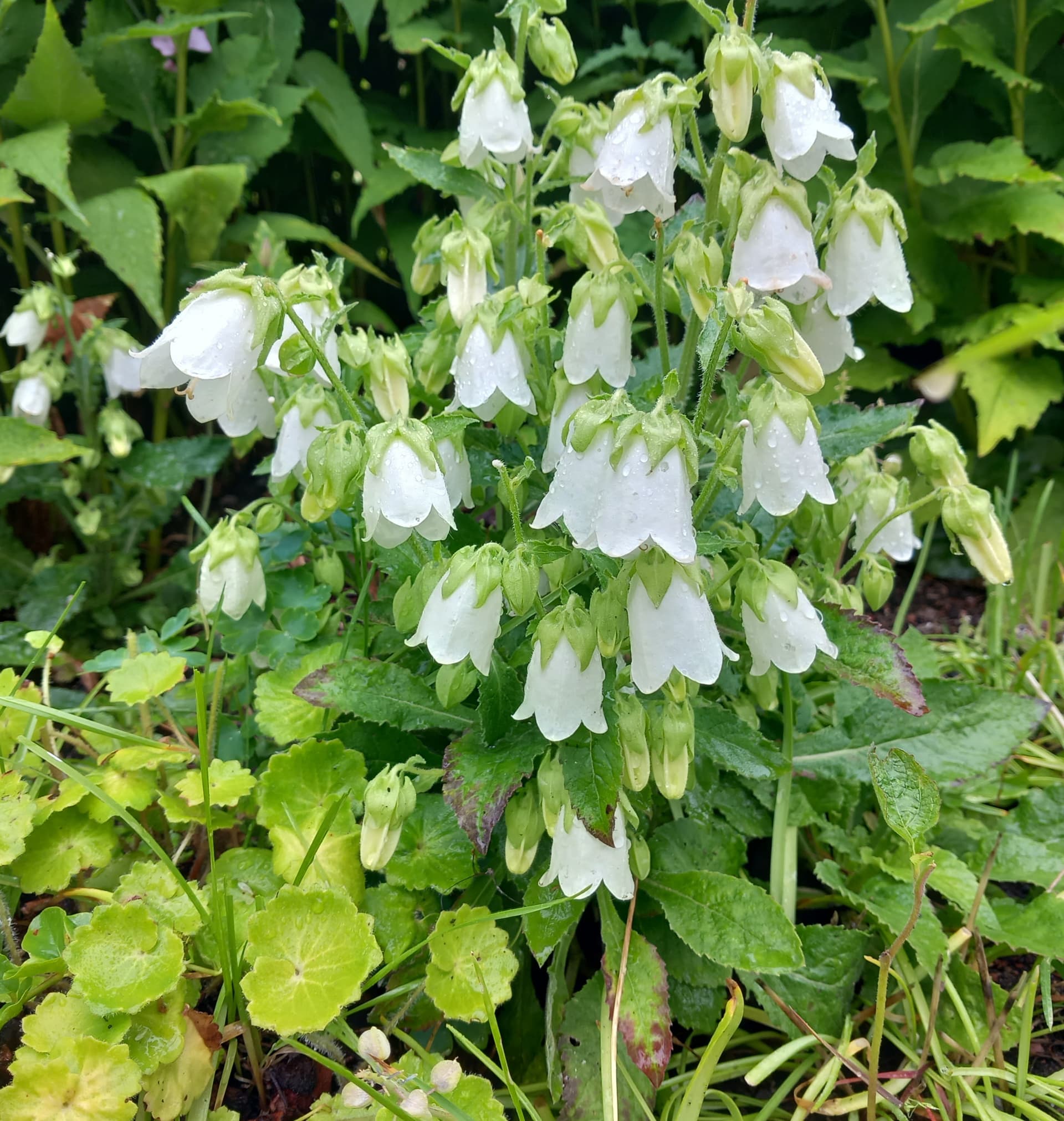 Mulla itelläkin kasvaa kaukasiankellokki tuolla yhessä uudessa perennapenkissä . Mutta onko vielä kuvaa