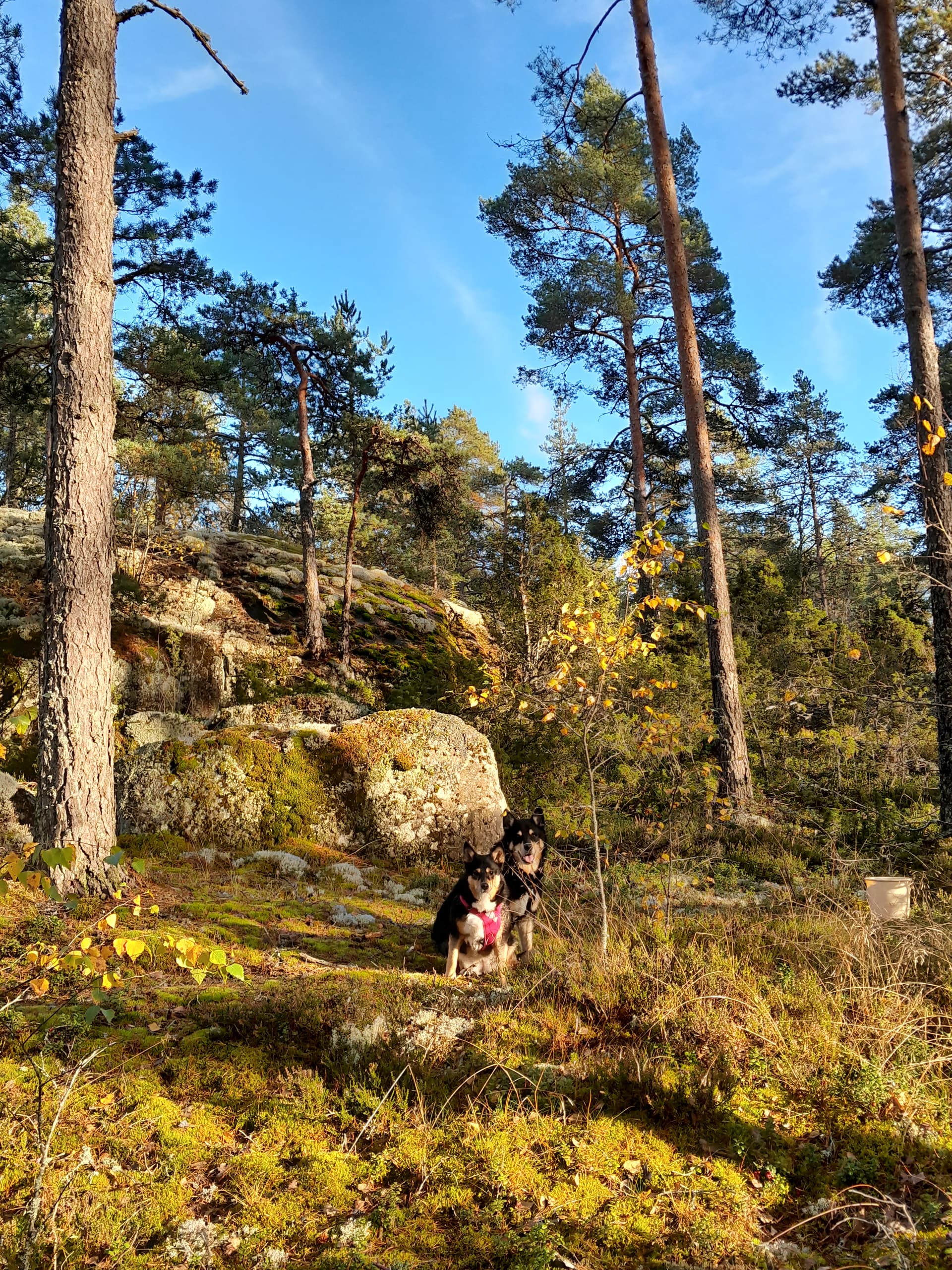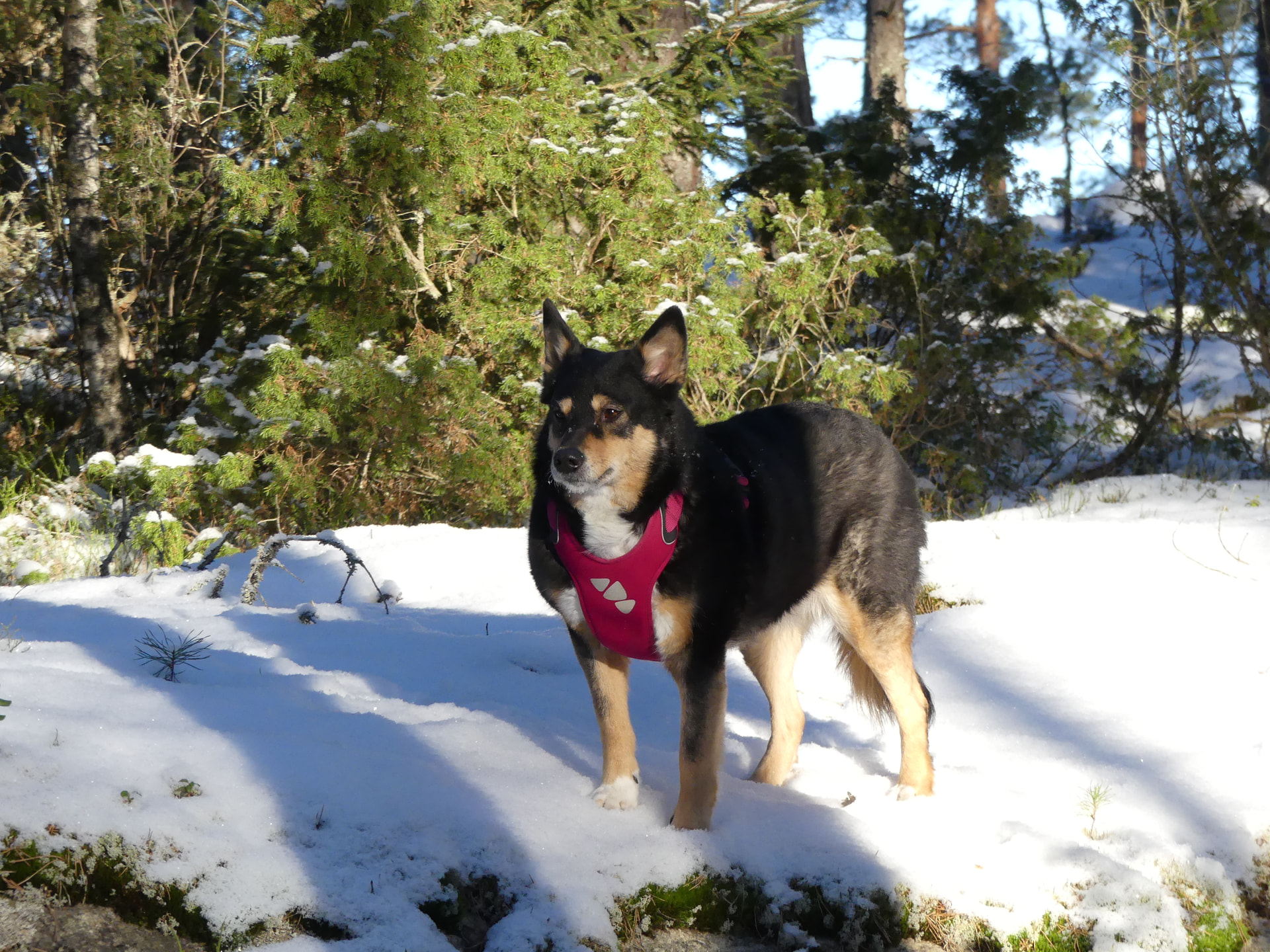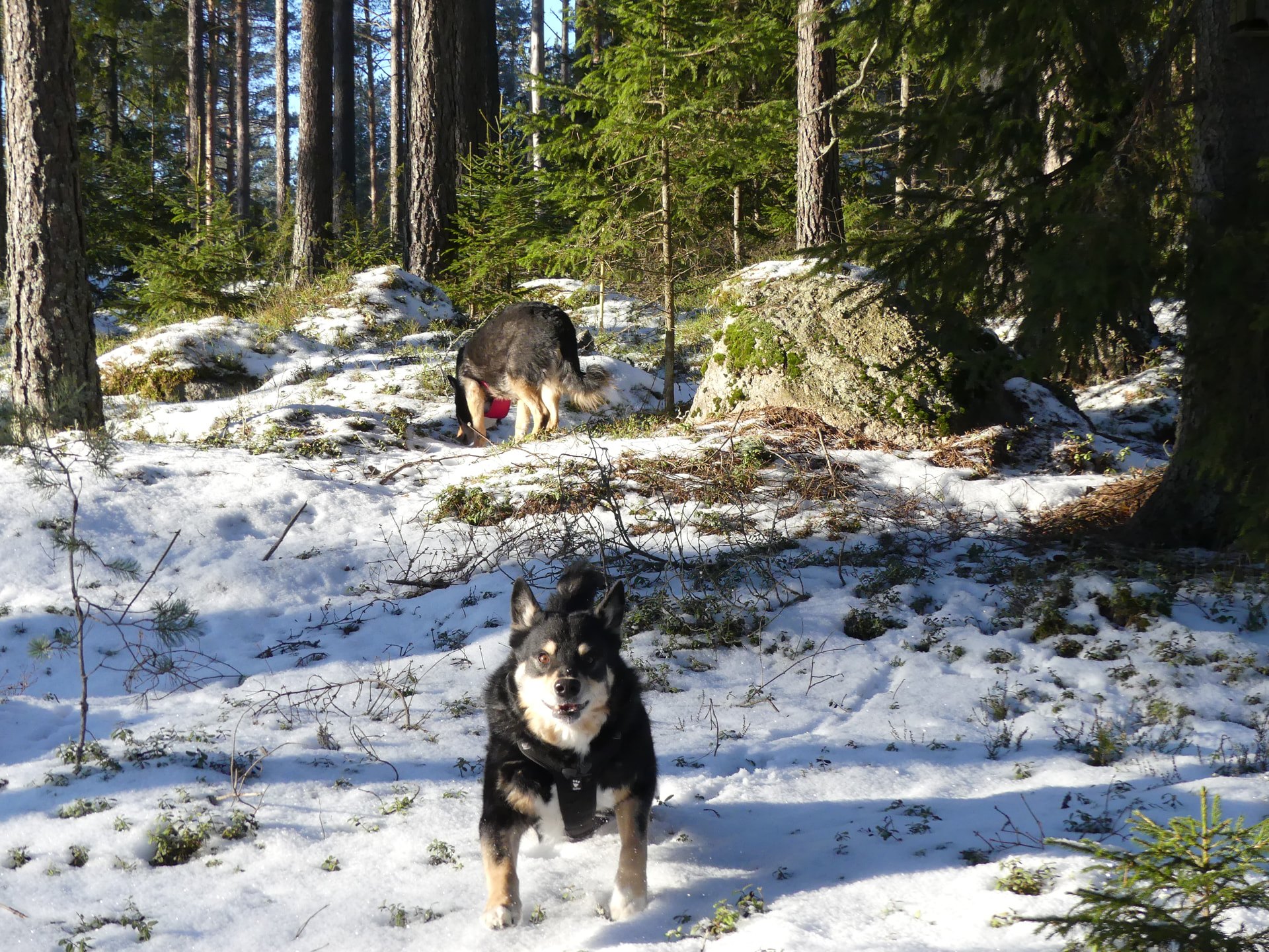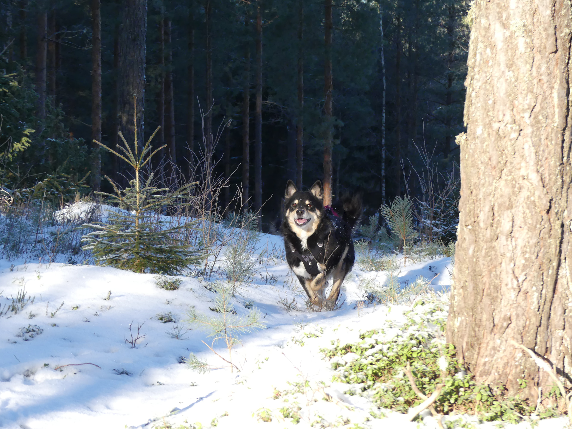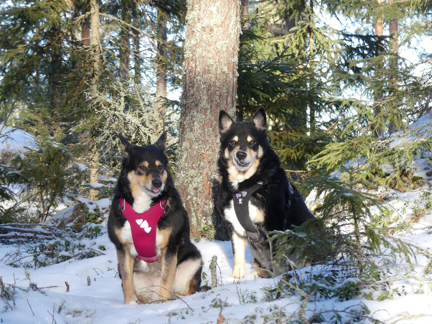 Me lenkkeillään talvisin paljon pelloilla ja peltoteillä ja niityillä. Ei oo niin liukas ku tiellä ja ei tarvii mennä autojen seassa. ![]()