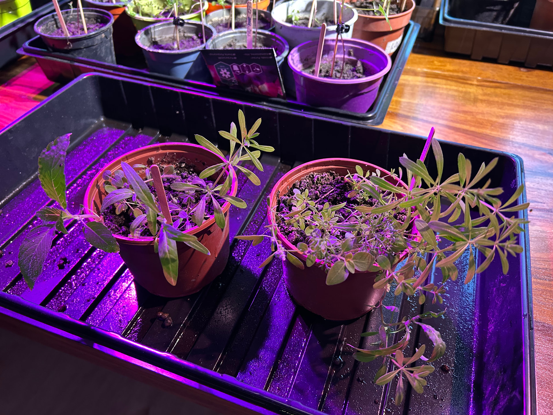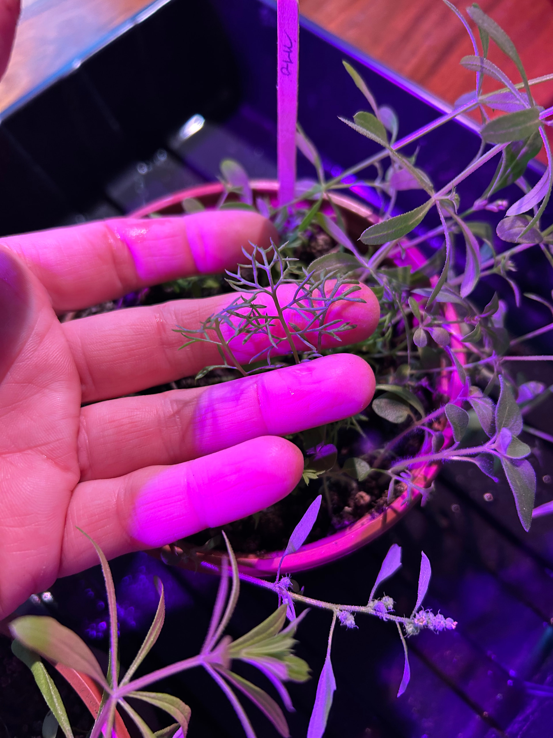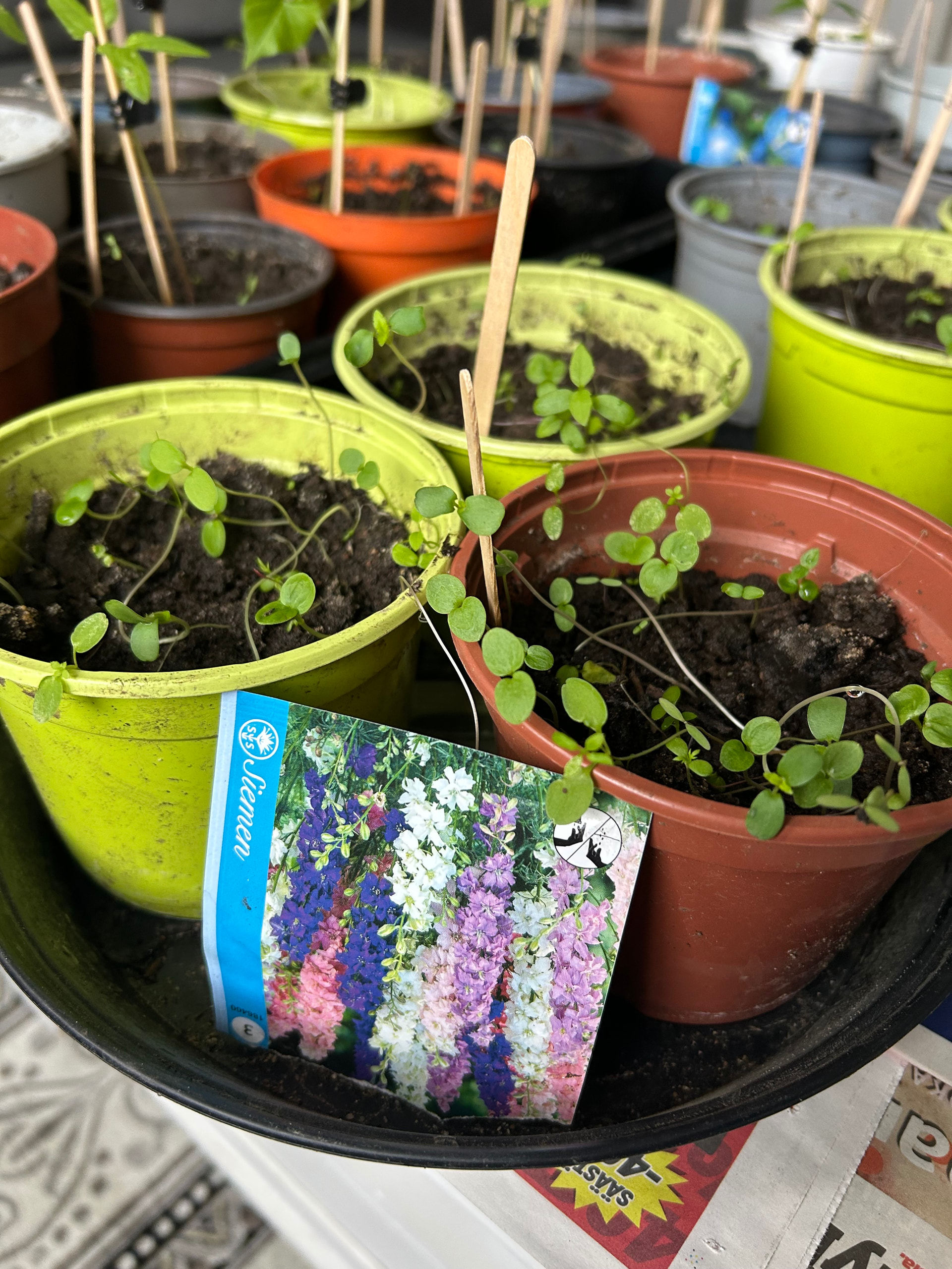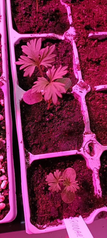 Näin käy, kun laittaa peltomultaan siemeniä. Näyttääkö mikään näistä yhtään kukonkannuksen taimelta? Mietin tätä haarautunutta, tillimäisen näköistä tainta. Voisiko se olla?