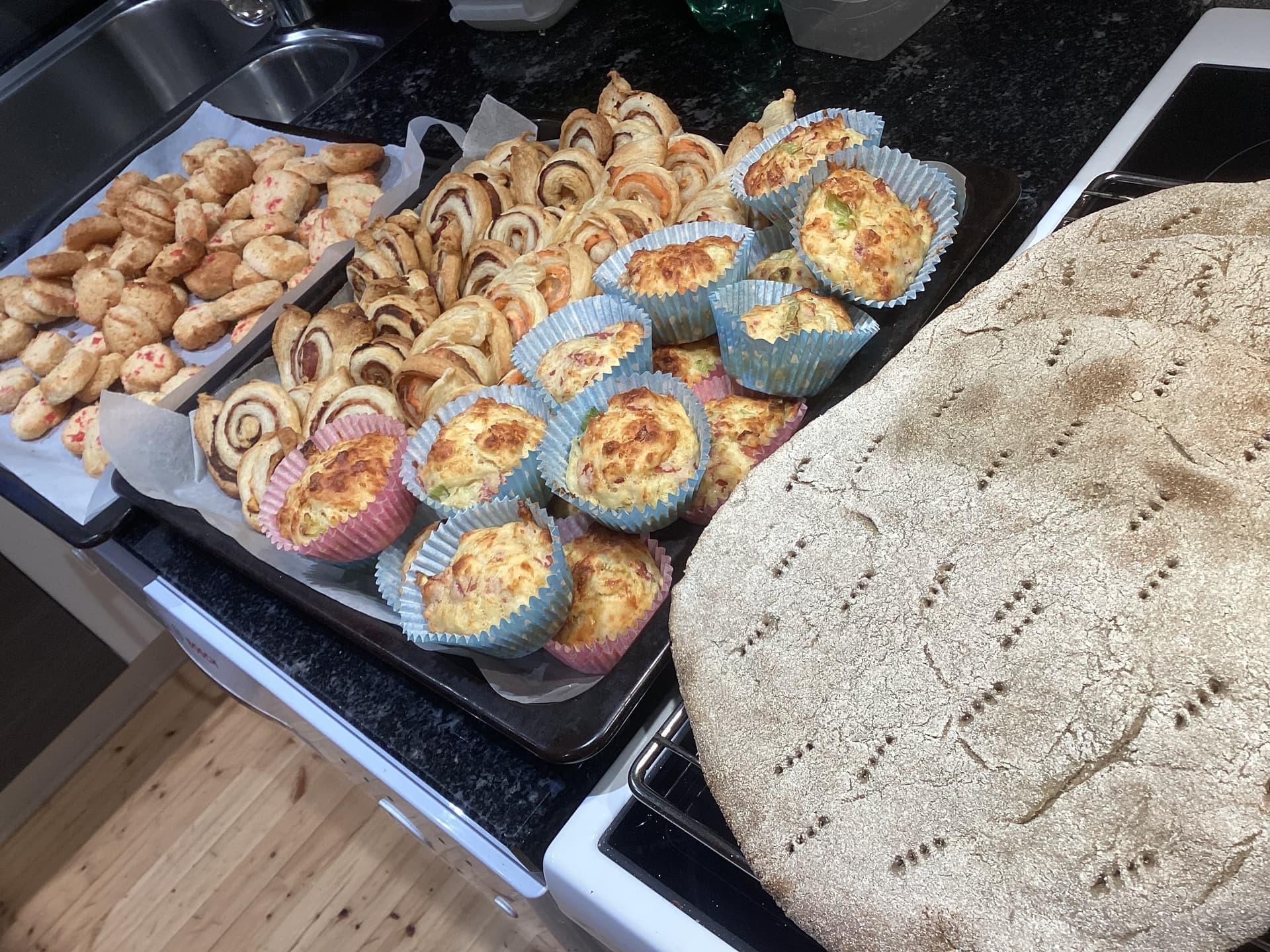 Ohrarieskat,suolaset muffinssit,poro ja savulohi kierteet ja joulupukin kuiskaukset.