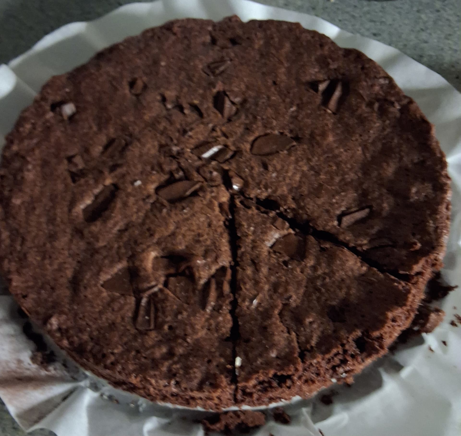 Nyt sain tehtyä mutakakun, kurkistin sisäpuolella mutaselle vaikutti. Pienempi vuoka olis pitänyt olla että olis tullu paksumpi.