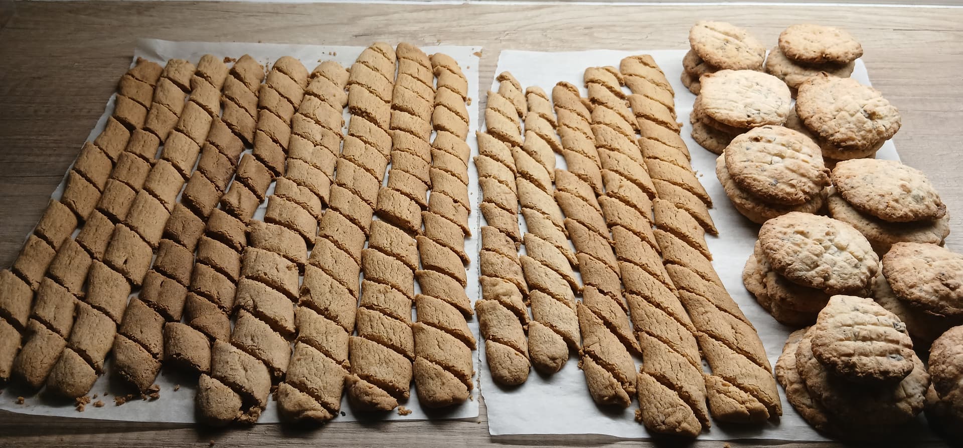 Gluteenittomia Wilhelmiina keksejä sekä toisia joissa on kuivattuja hedelmiä, suklaata, kookosta, mantelijauhoja yms.