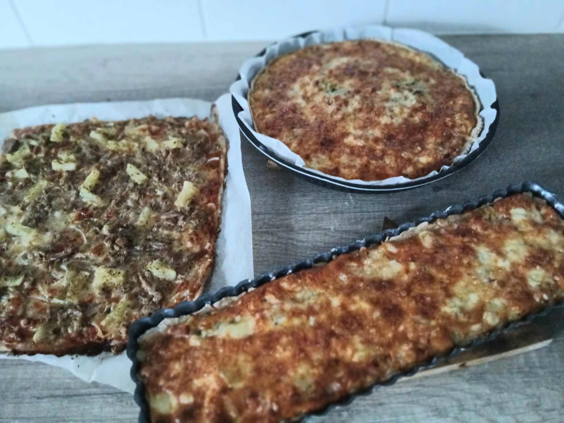 Pari gluteenitonta kinkkupiirakkaa ja tonnikalapitsa.