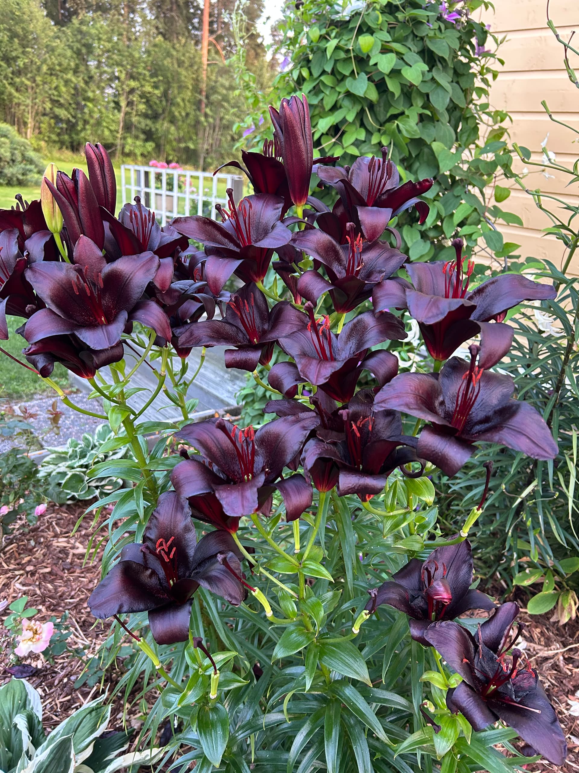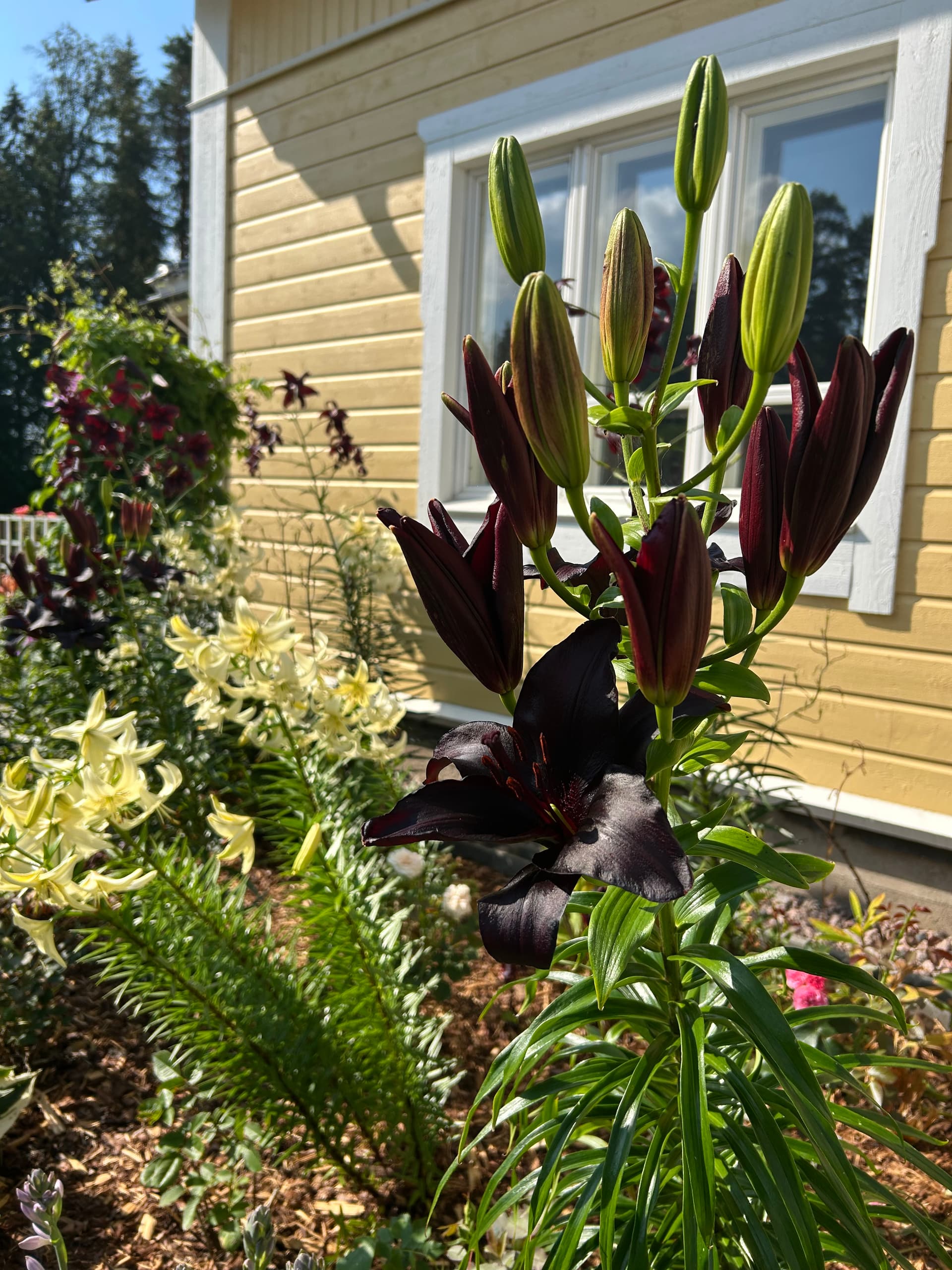 Filopatorilta saadut liljat kukkivat tänä vuonna tosi pitkään, varmaan johtuen runsaista sateista. Nämä tummat ovat erityisen upeita. Iso kiitos näistä Filopatorille!