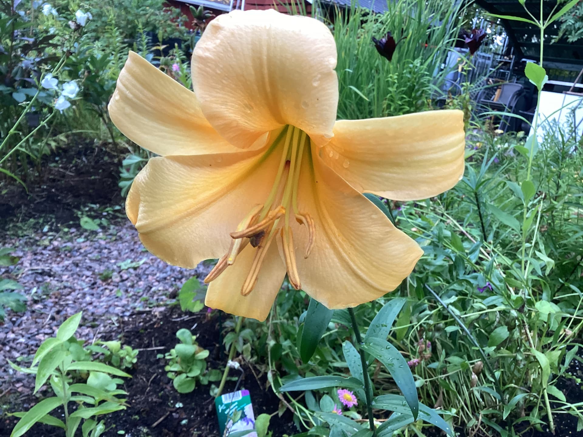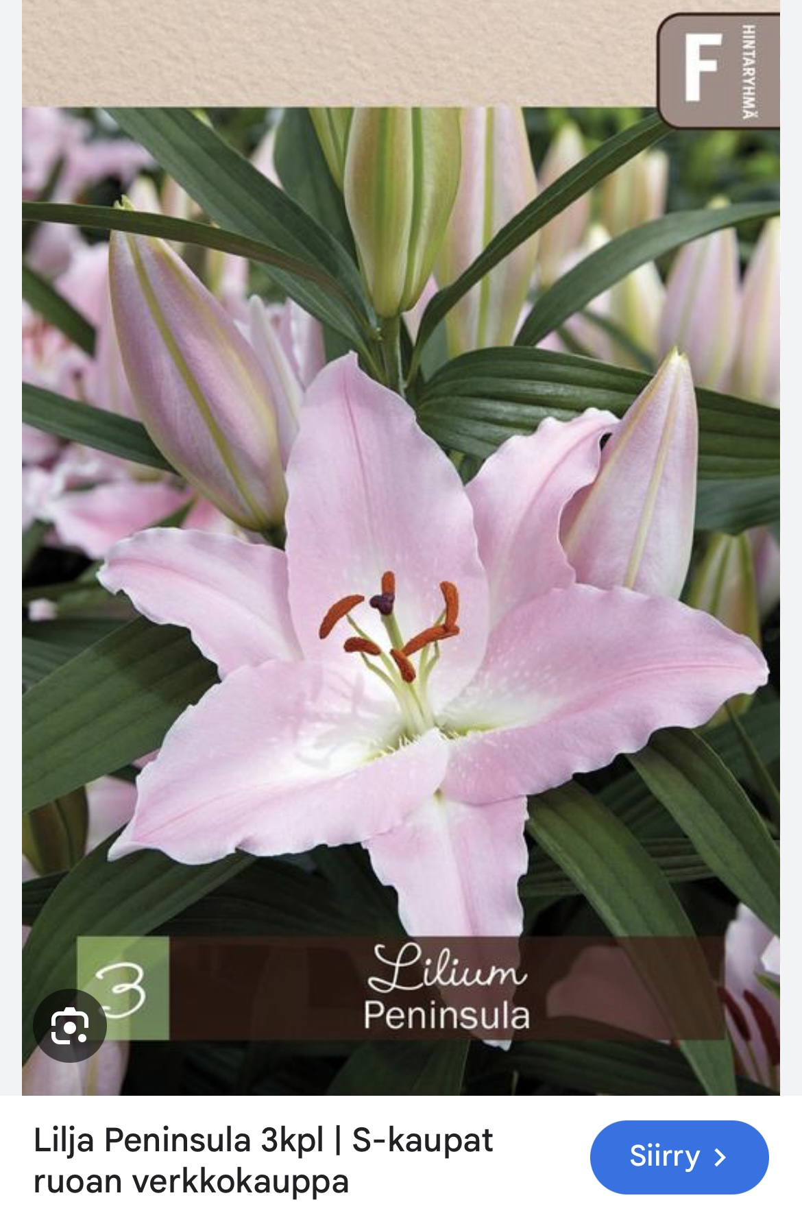 Tosi kaunis! Ostin Prismasta viime syksynä ”Peninsula” -liljan sipuleita ja laitoin maahan, mutta eivät vielä tänä kesänä kukkineet (jos nyt ylipääänsä selvisivät talvesta).