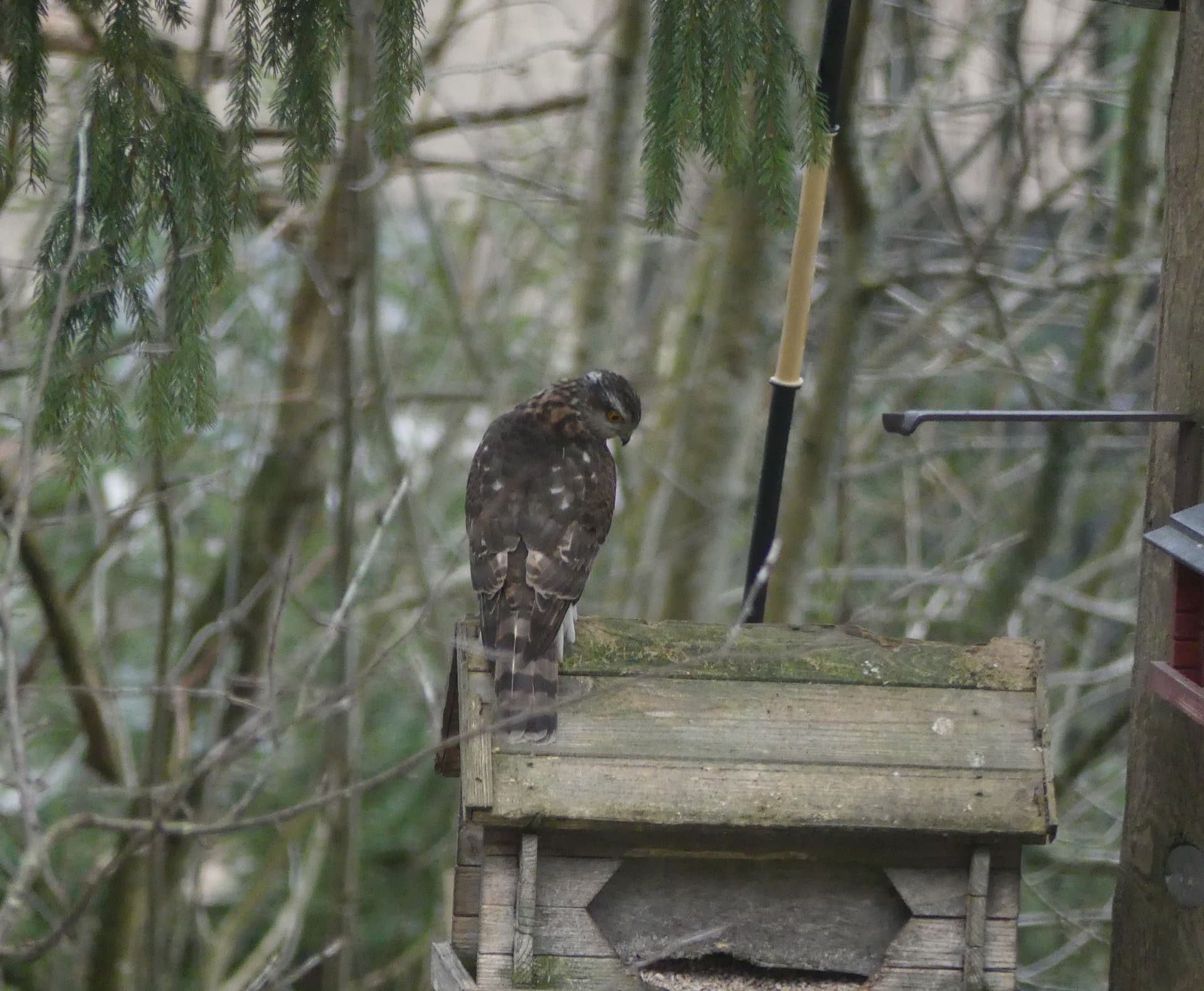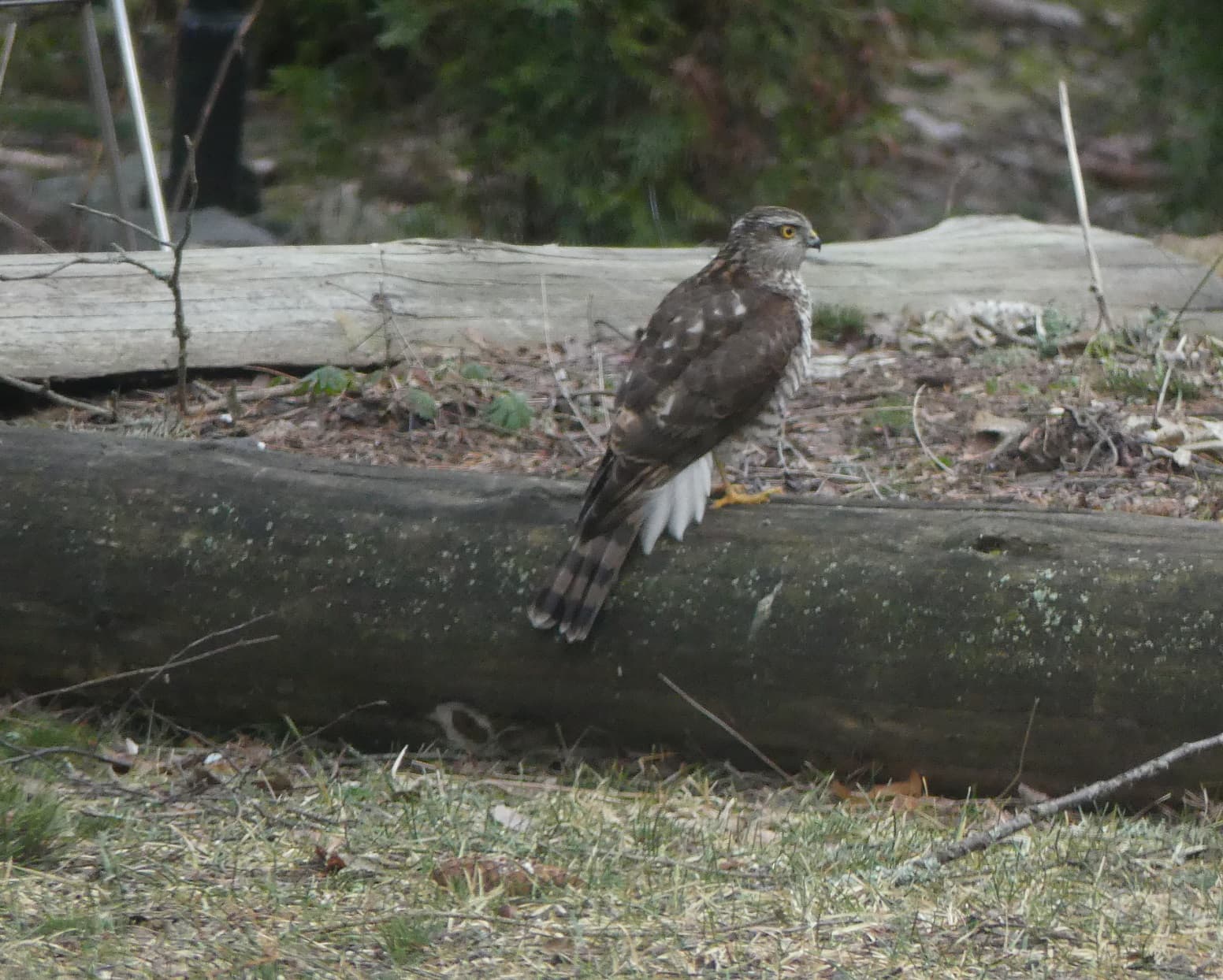 Syö pikkulintujakin. Meillä kun pikkulinnut pitää kovaa meteliä niin tietää että varpushaukka hakee syötävää.