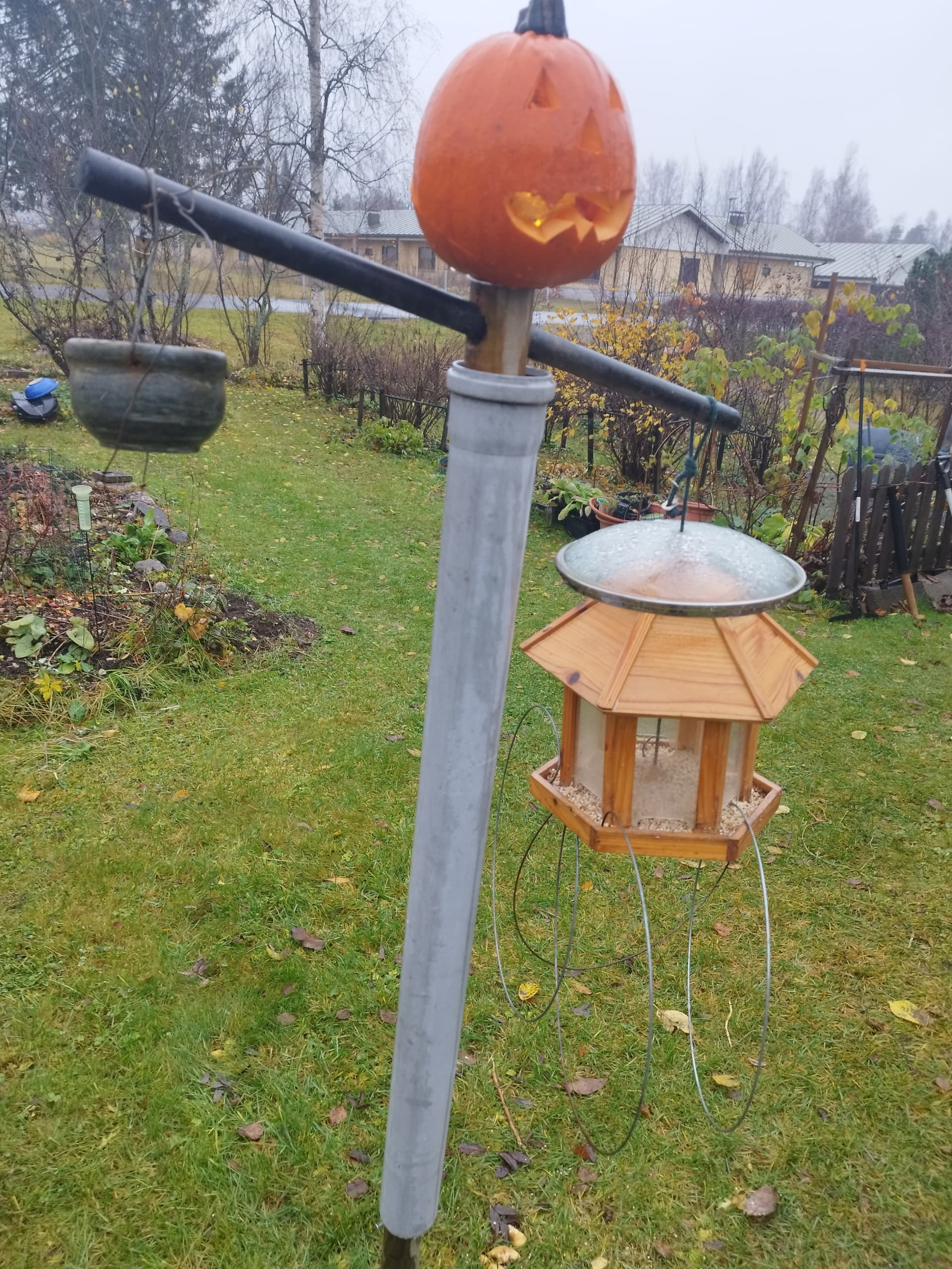 Laitoin meidän kaiverretun Halloween kurpitsan siemenet tarjolle puutarhapöydälle keramiikkalautaselle perjantaina. Sunnuntaina lautanen oli tyhjä, kiva oli katsella kun siipiveikot veivät nokassaan siementä suurena aarteenaan.