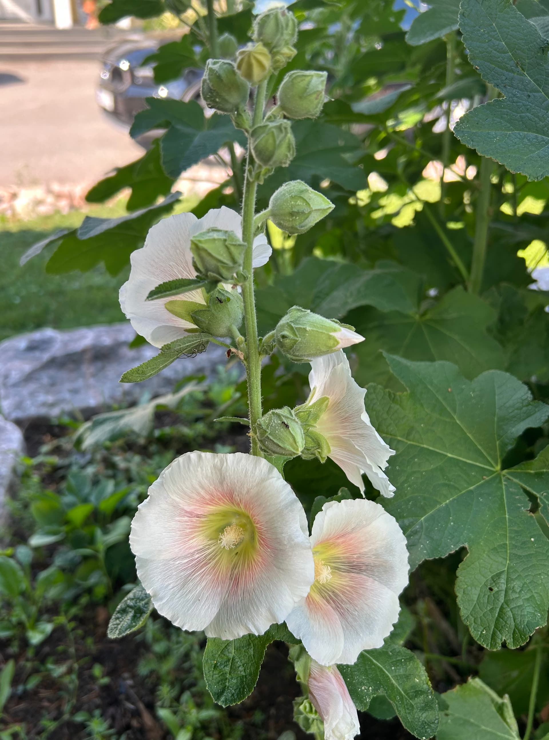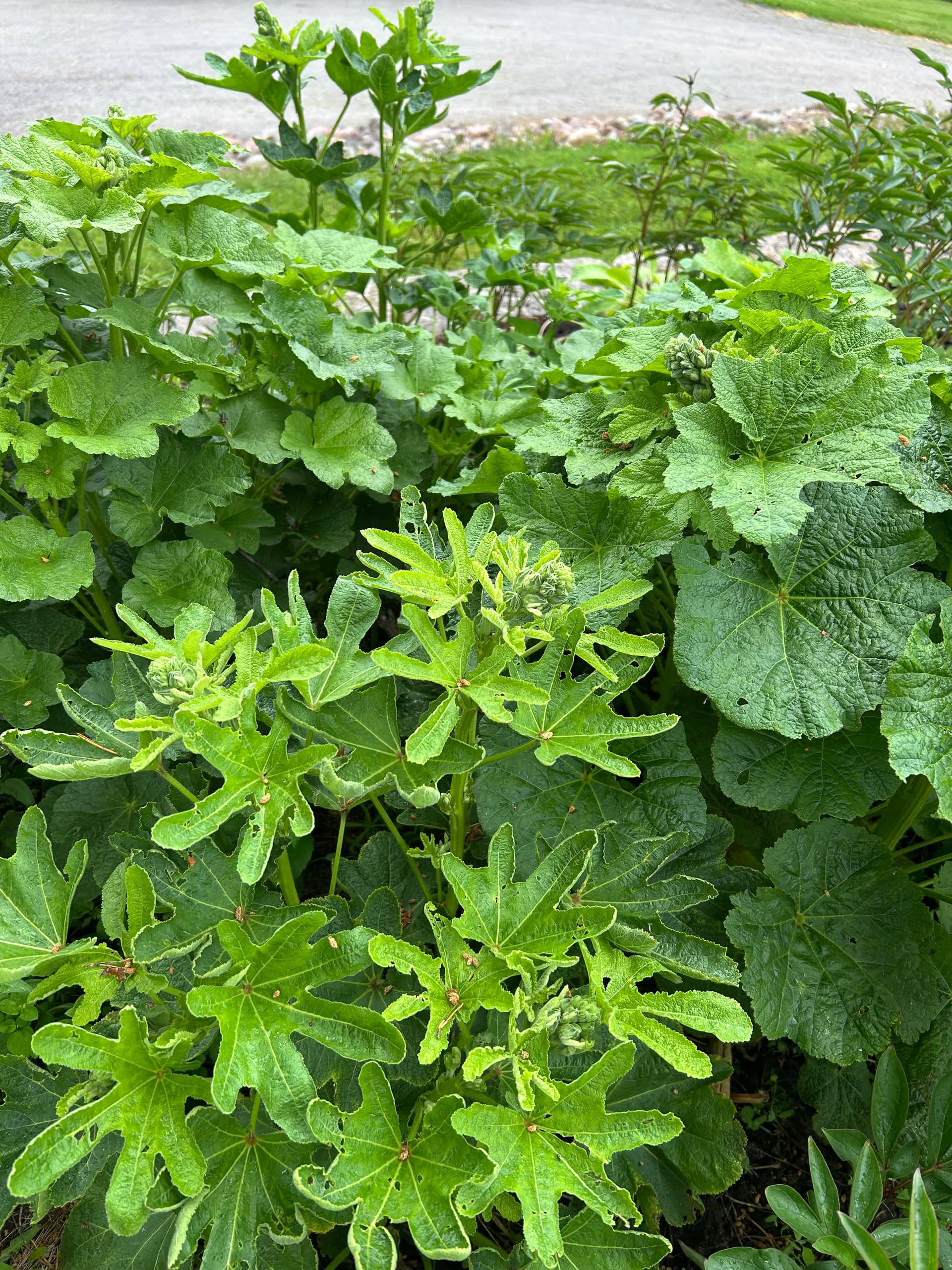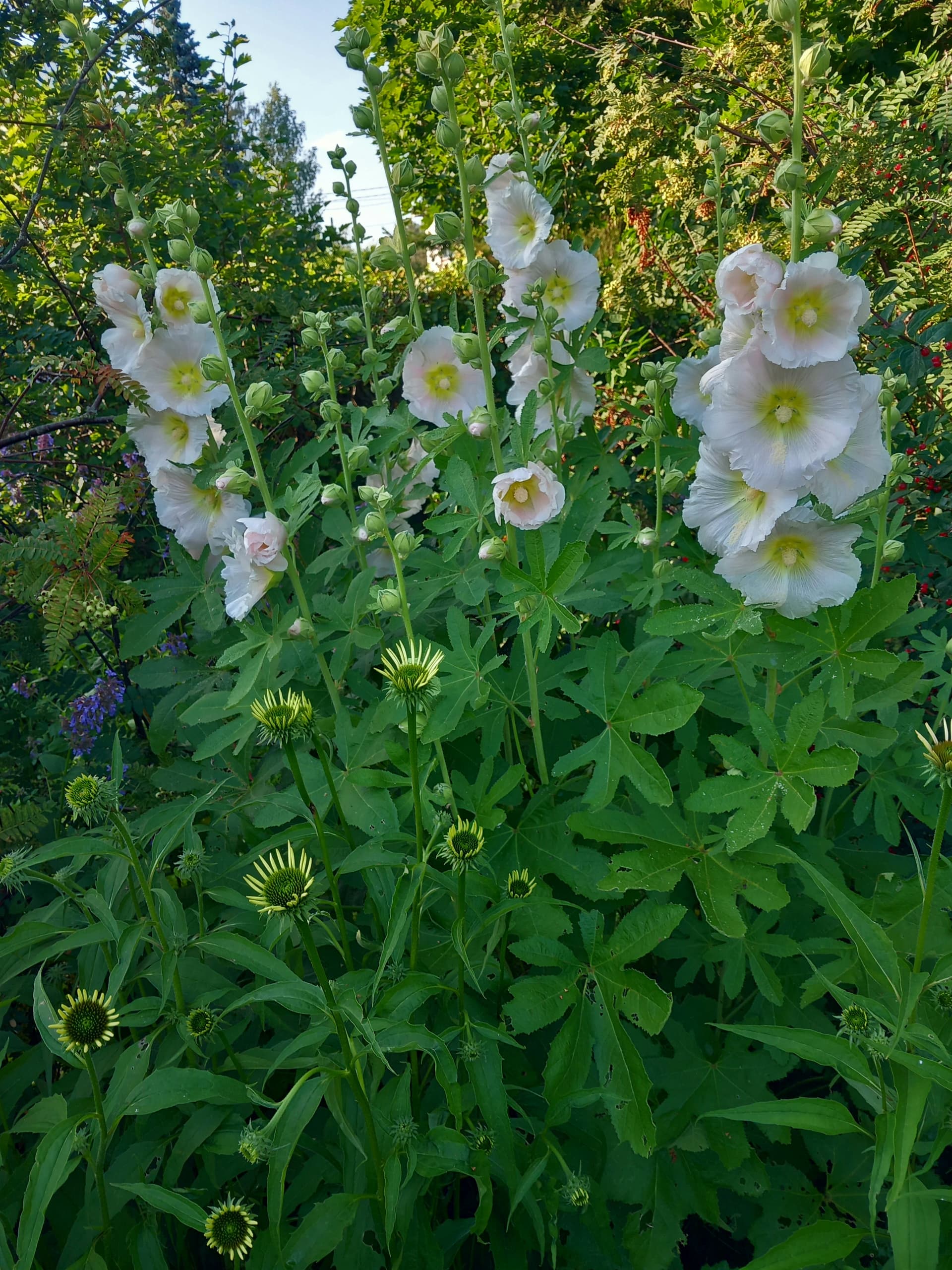 Siirsin salkoruusut tähän kahdesta eri paikasta tänä keväänä. Olenko ripotellut siemenkirjeessä olleita liuskasalkoruusun siemeniä jo olemassa olevien kasvien juurelle aiemmin, ja nyt ne alkavat kukkia? Vai mitä tässä on tapahtunut?