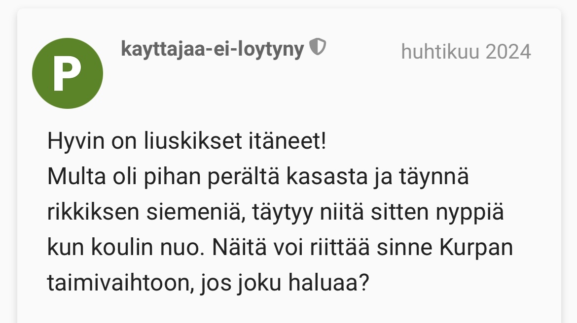 Laita sinne taimivaihtoketjuun maininta jos haluut varmistaa et tarjous huomataan.