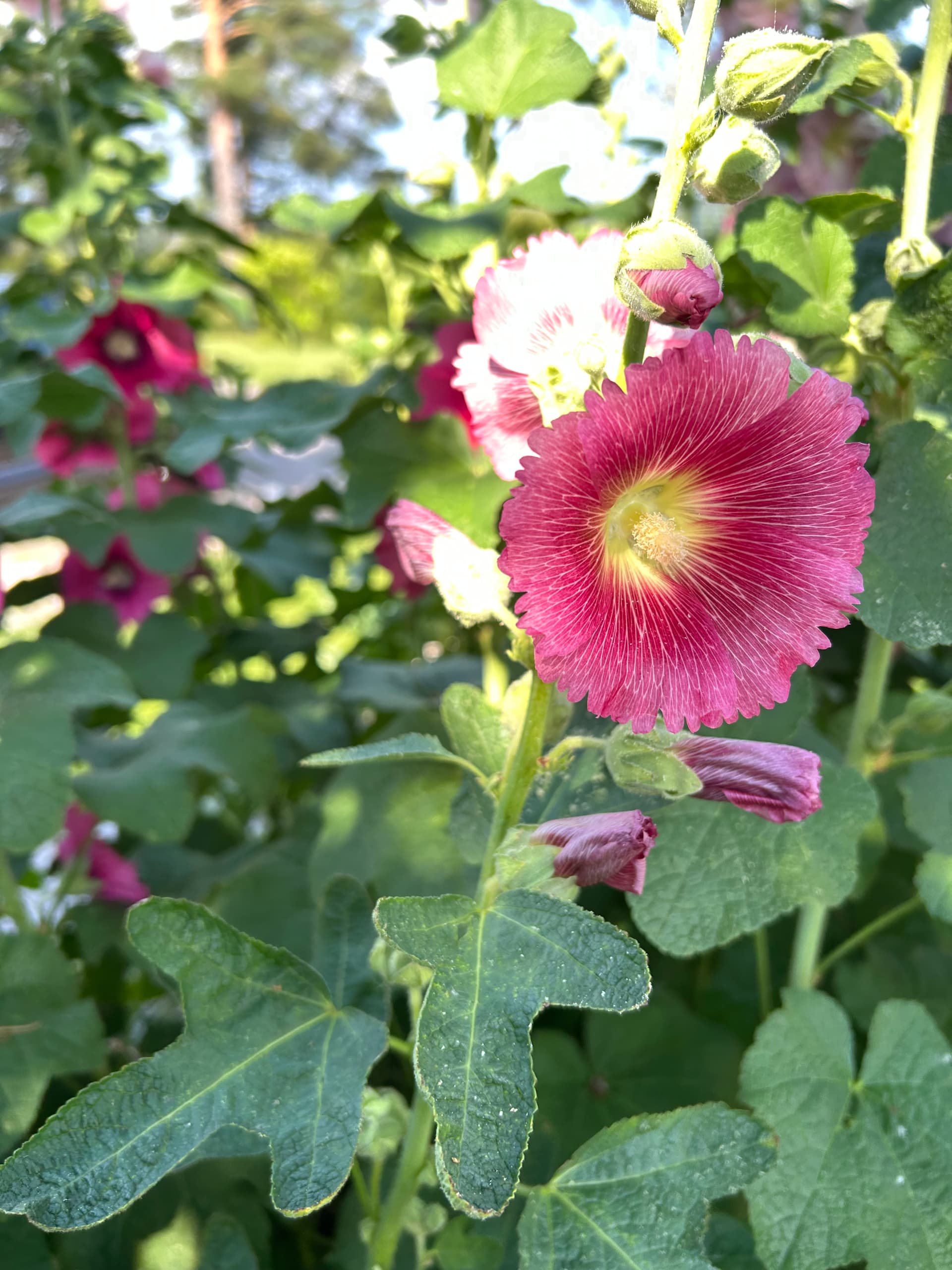 ei mulla viime vuonna tän väristä ollut. Oli yks tumma joka kukki, ei muita. Tarkistin muistiinpanoista et oli taimia useita, siemenkirjeestä saatu (tiedot :värit valkoisesta tummaan punaiseen) Hankikylvönä laitettu helmikuussa 2023.Tällainenkin kukkii parhaillaan