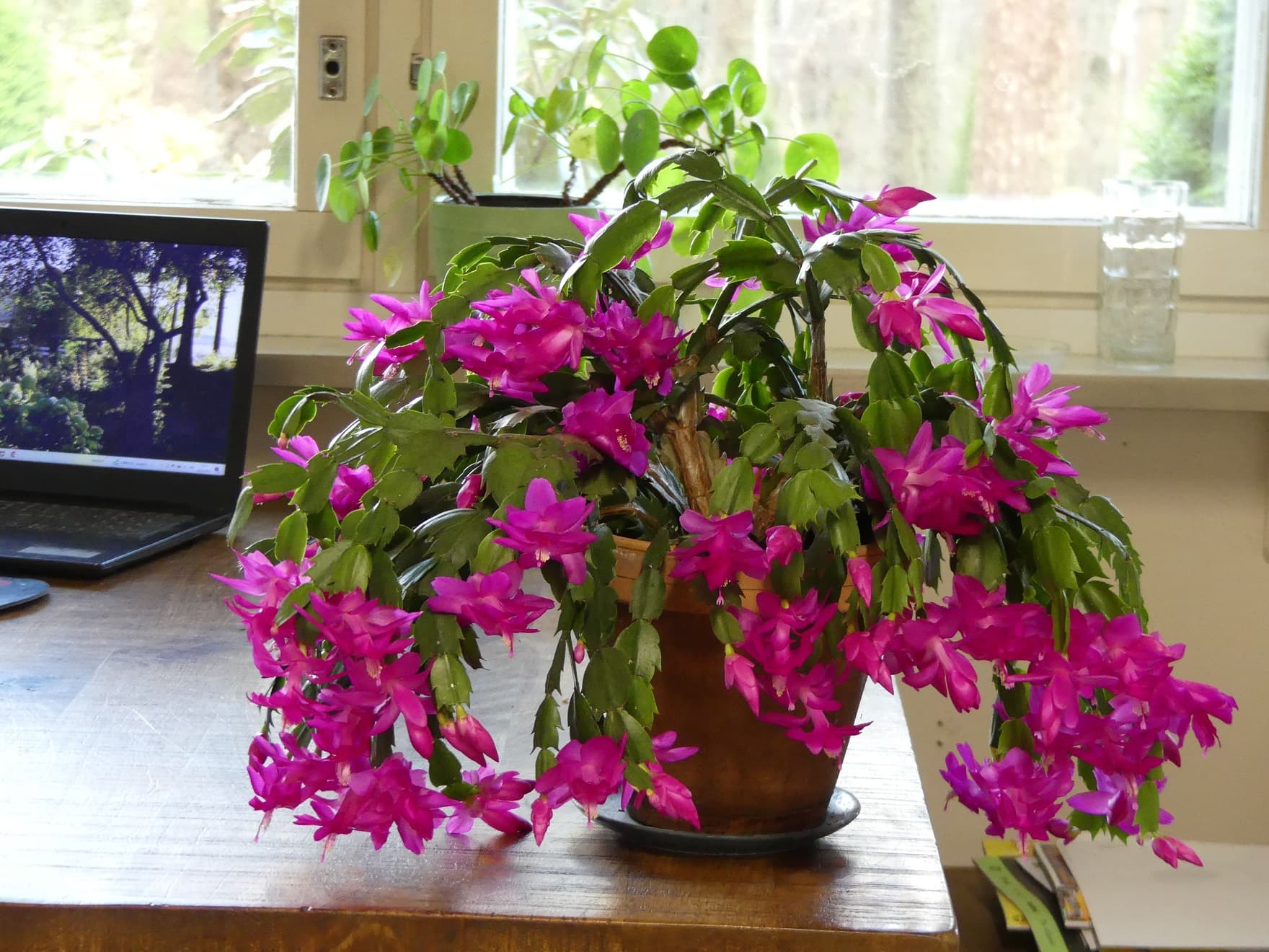 Marraskuunkaktus on parvekkeella joulukaktuksien kanssa. Ne tarvitsee viileää yötä.