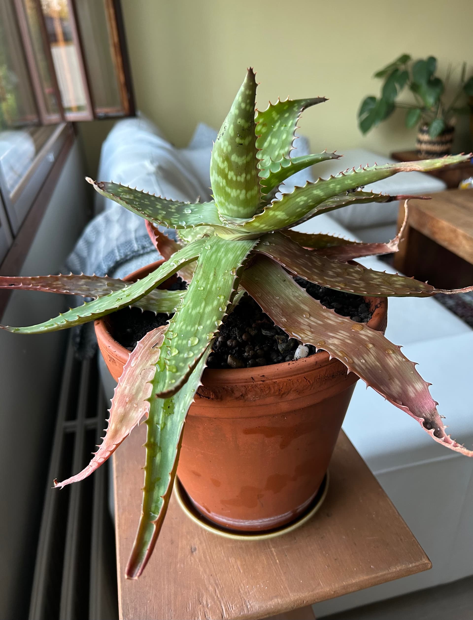 suopa-aaloe (Aloe maculata). Otin jouluna tuollaisesta kuviakin. Voi tietysti olla ihan joku muu.