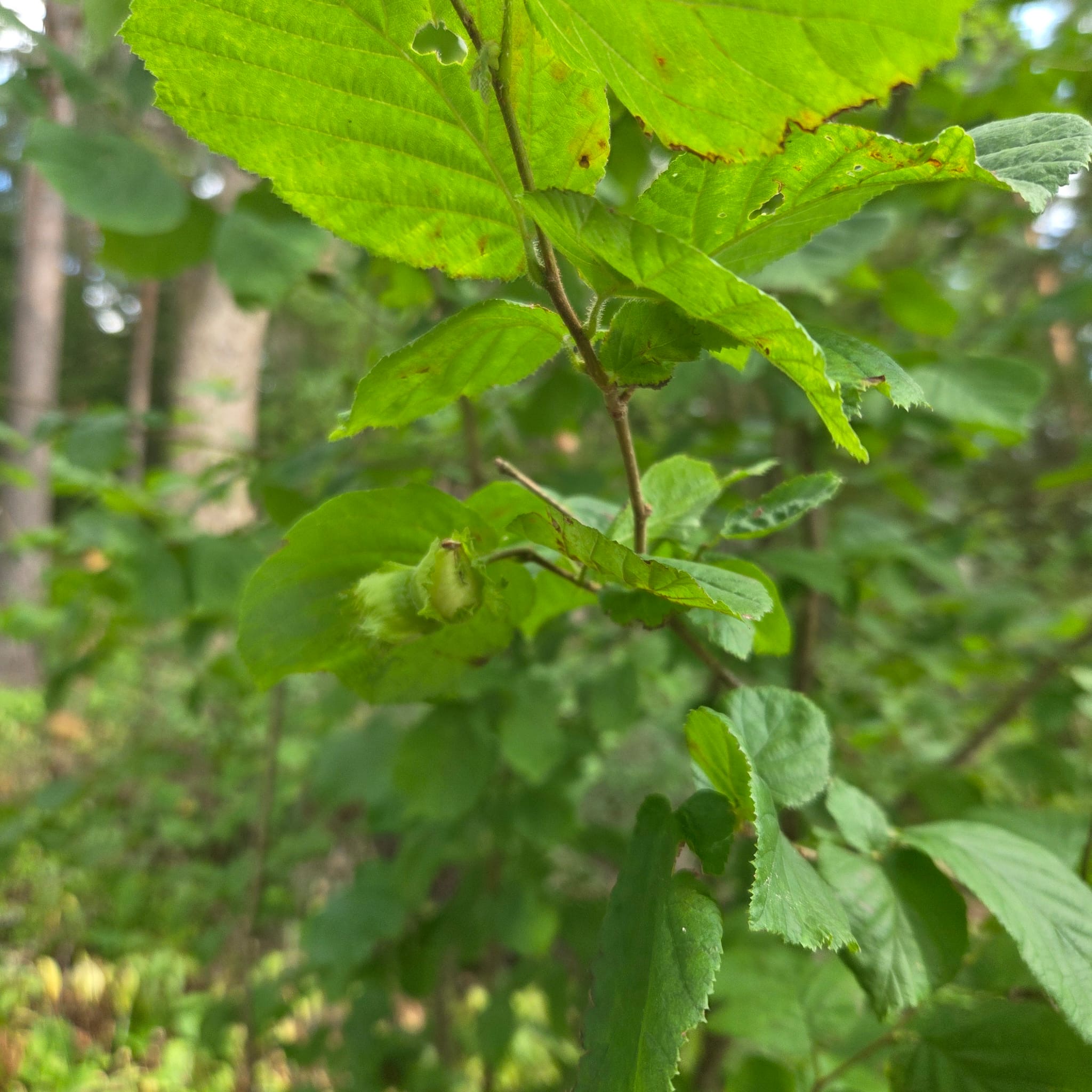 Täälläkin metsässä kasvaa tuo pähkinäpensaspuu.