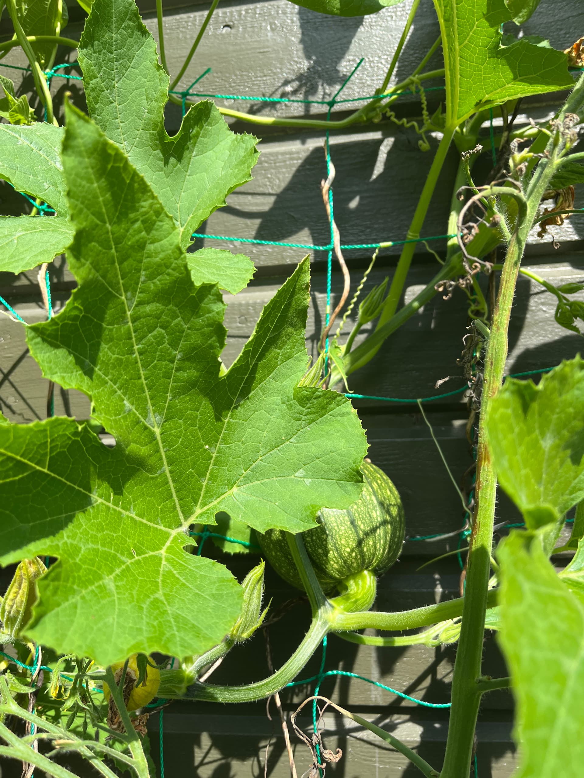 Joku kurpitsa. Onko pyöreä, voisi olla kesäkurpitsa omenakurpitsaksi sanottu.