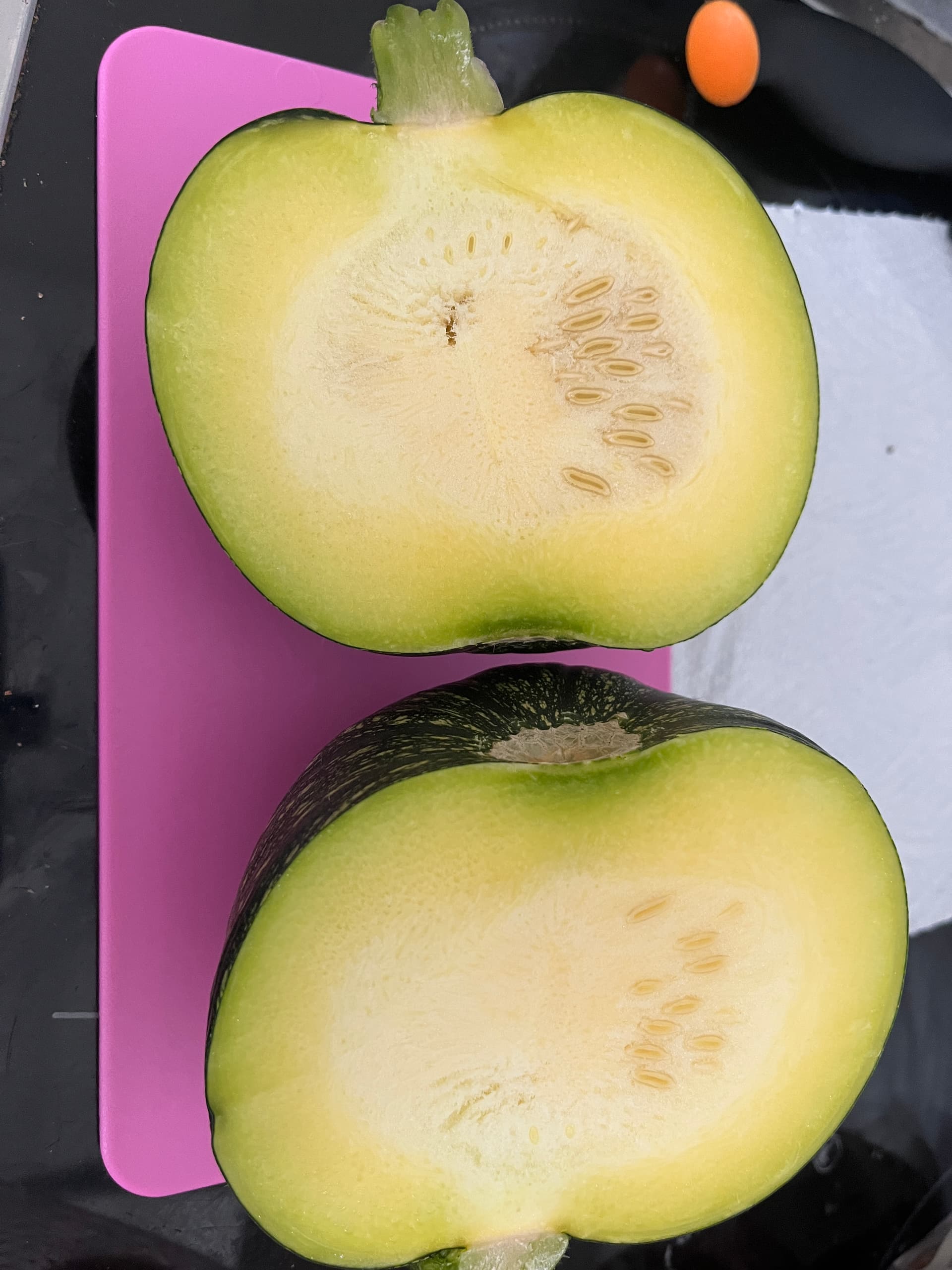 Kurpitsa, vielä nuori päätellen siemenien kehitysasteesta. Siitä vaan valmistamaan herkkuruokaa.