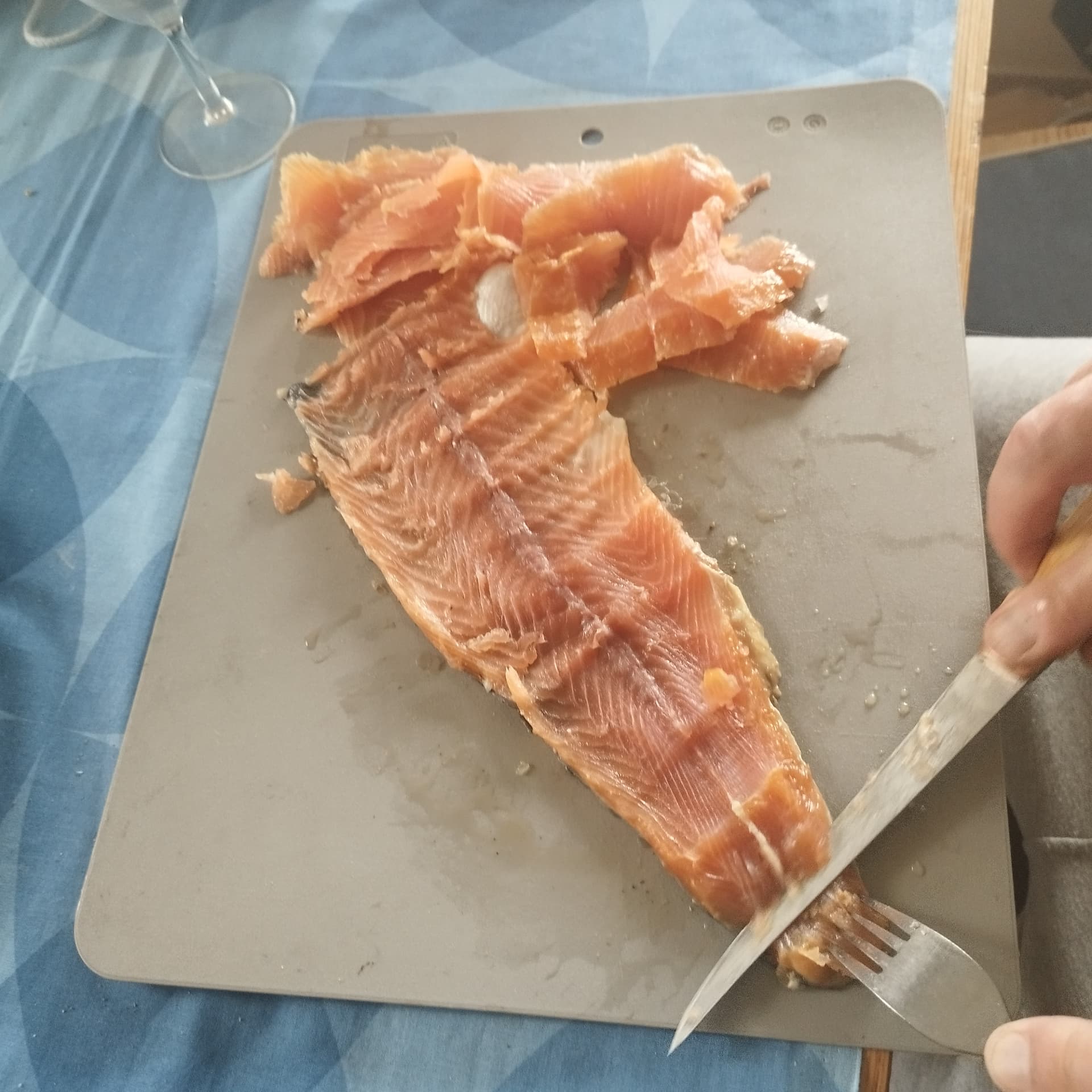 Kylmäsavustettiin 1,7 kg norjanlohi, 5,90 kg. Tulee 850g-1.1 kg syötävää. Kylmäsavugeneraattori ja pönttö mallin hiiligrilli on helppo yhdistelmä.