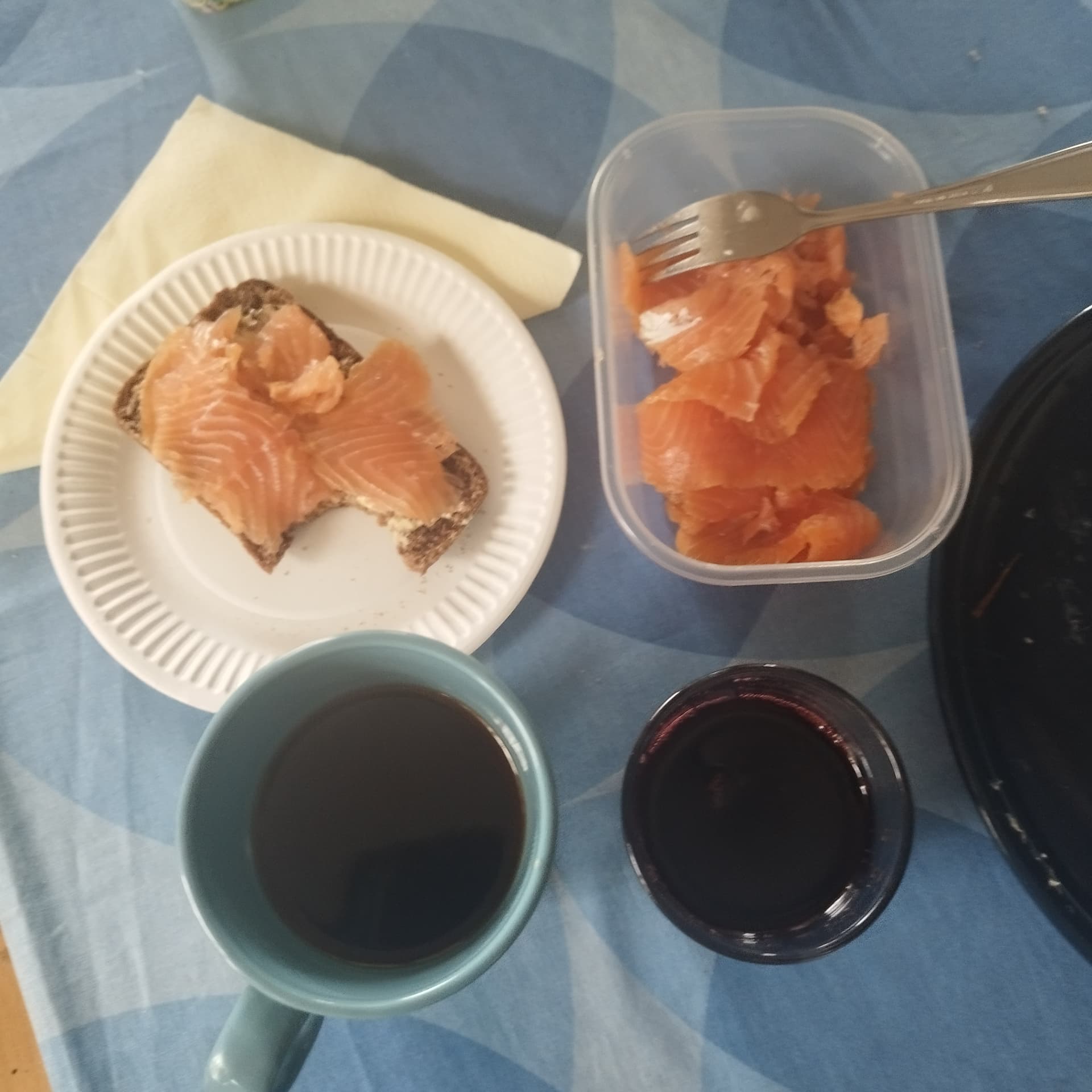 Me syötiin lohta ja keitettyjä perunoita. Lohifile pinaatti(kauden satoa) -creme fraiche-soossilla peitettynä uunissa. Kyllä sopi makunystyröille mainiosti, teen jatkossakin.