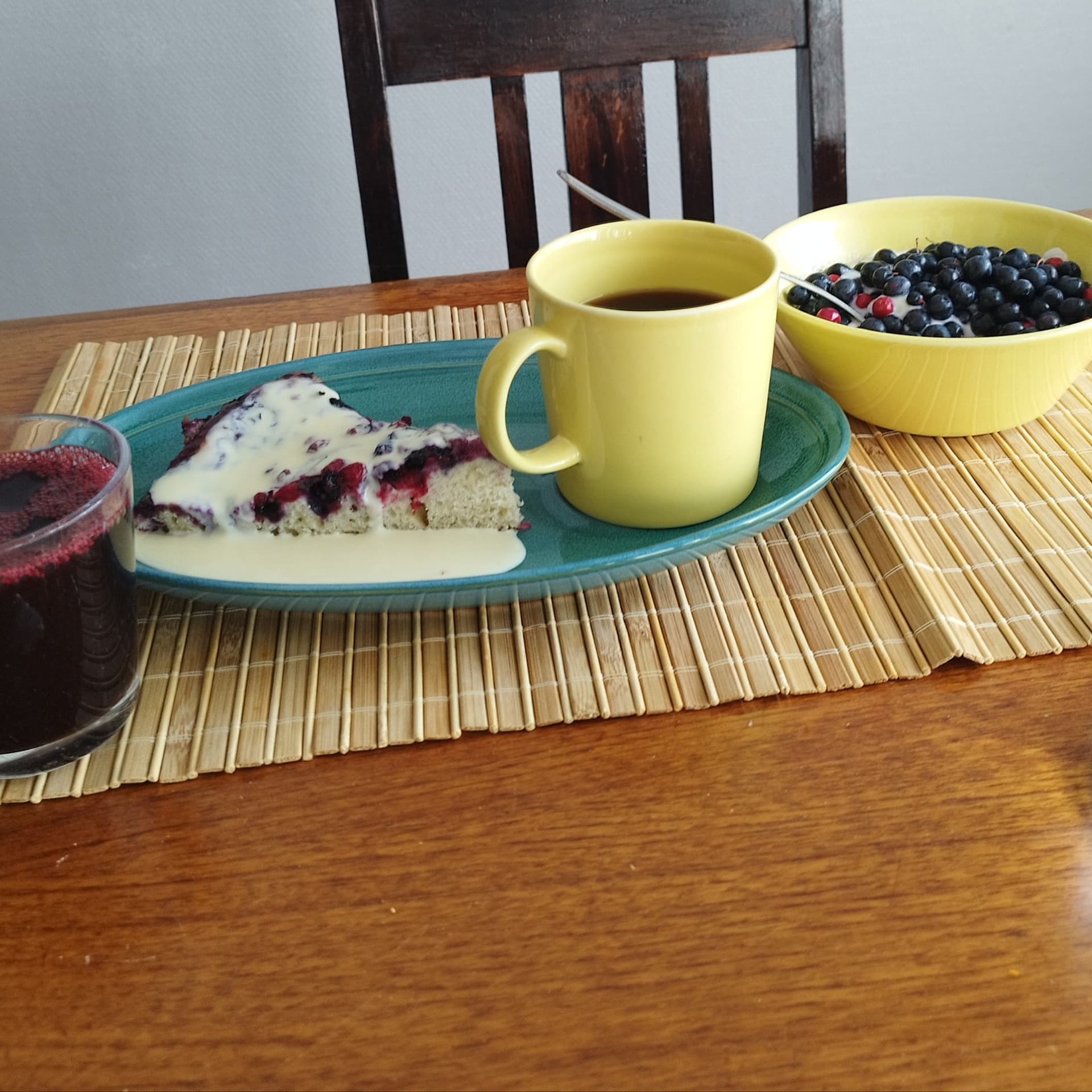 Kaksi mustikkakukkoa. Tuli vähän tummahinen tuosta joka oli leivinuunissa takana. Siinäpä ne tämän kesän mustikat tulee syötyä, kylmyys ja kuivuus kukisti marjat. Pakkanenkin ehti osansa ottaa.