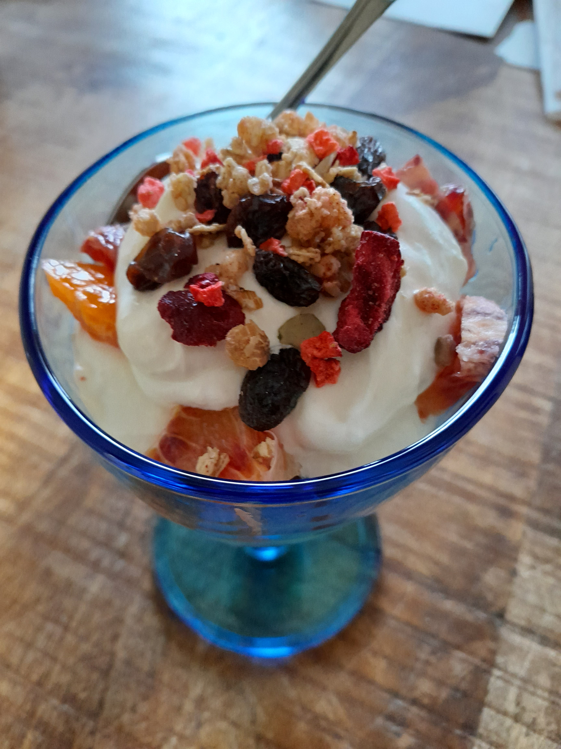 Päällä vähän granolaa ja rusinoit.