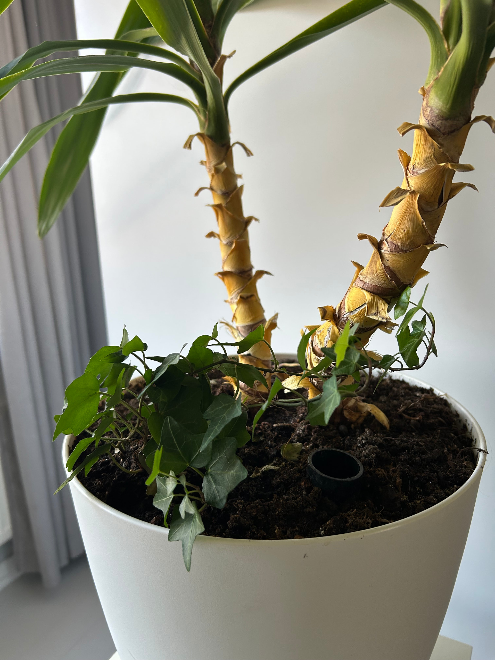 Istutin ison jukkapalmun juurelle jouluistutuksesta otetun pikku muratin. Tuossa se nyt kasvaa tyytyväisenä.