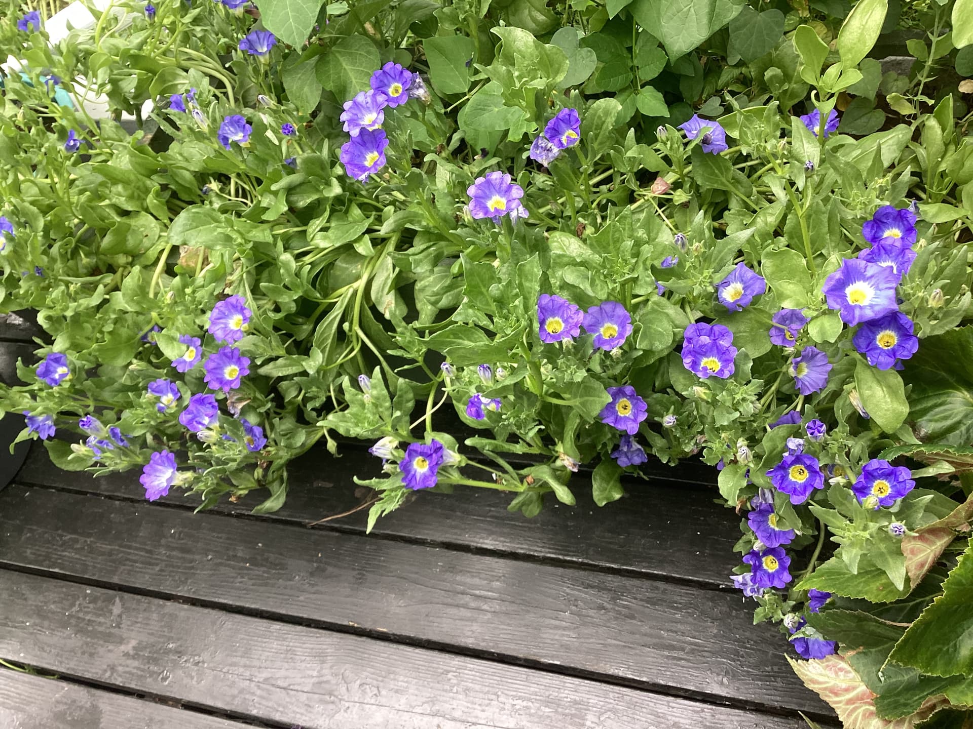 Tämä kuva viime kesältä. Kukat näyttävät erivärisiltä, mutta ovat oikeasti ylemmän kuvan sinisiä (ei lilahtavia).
