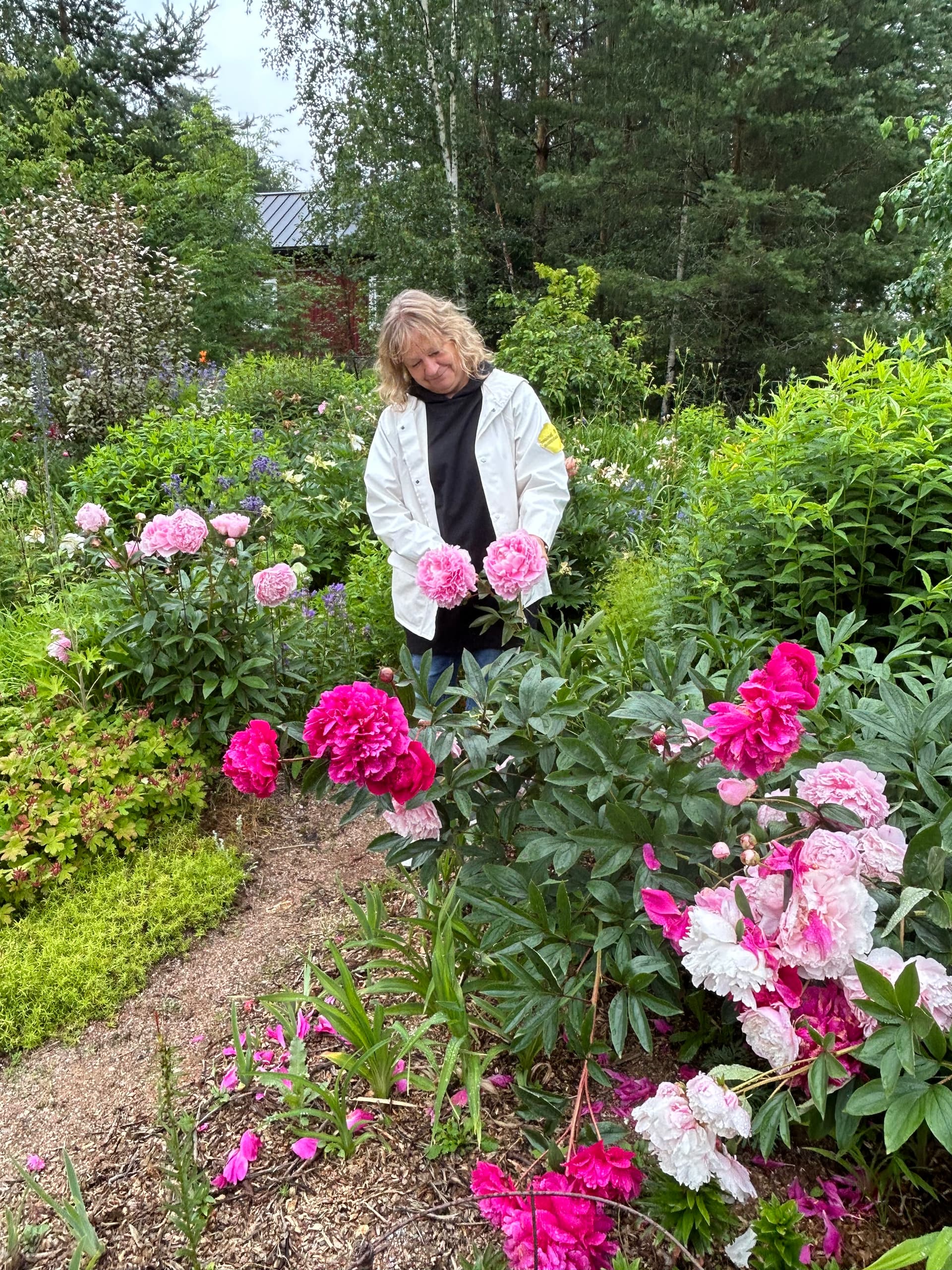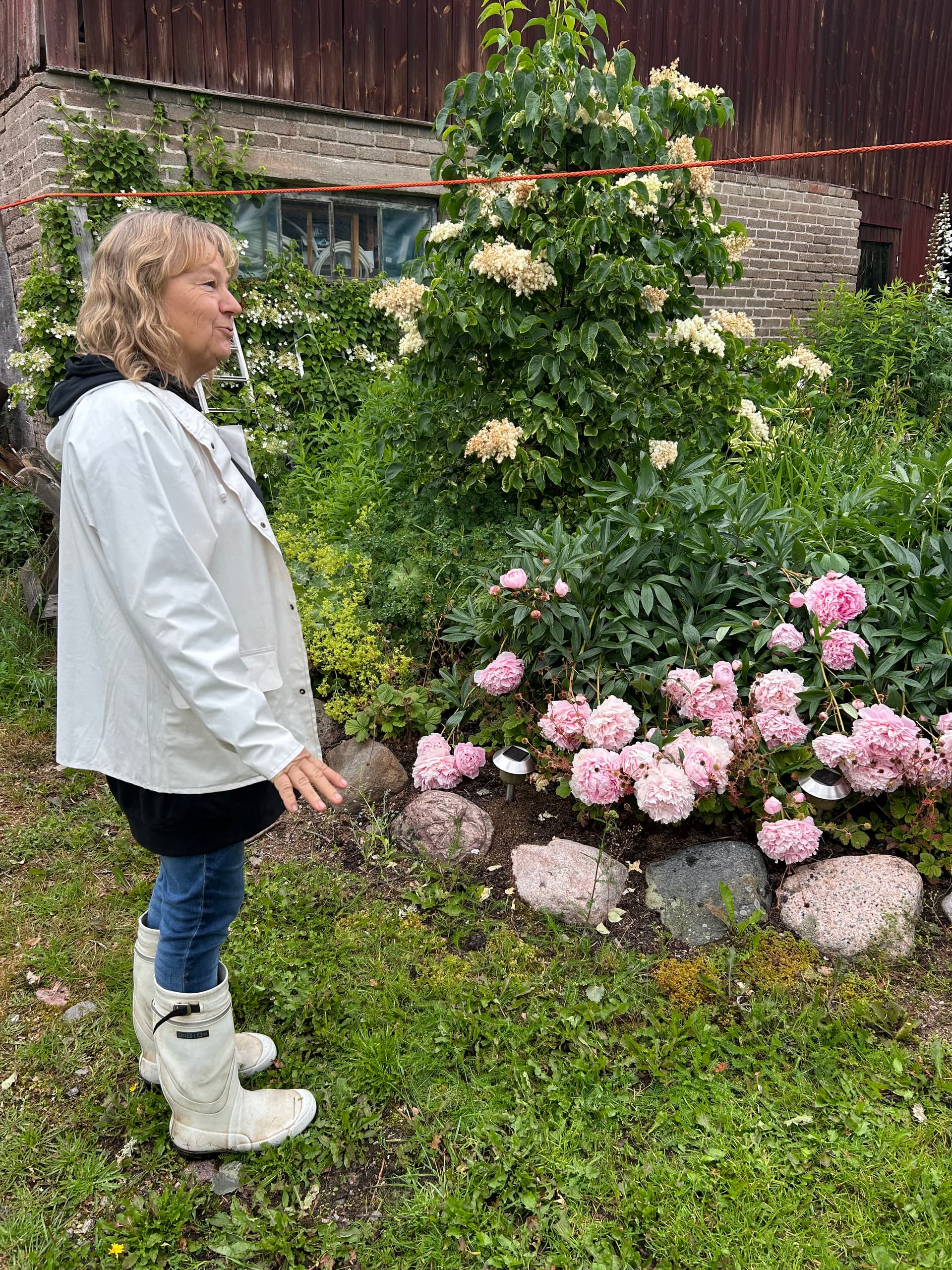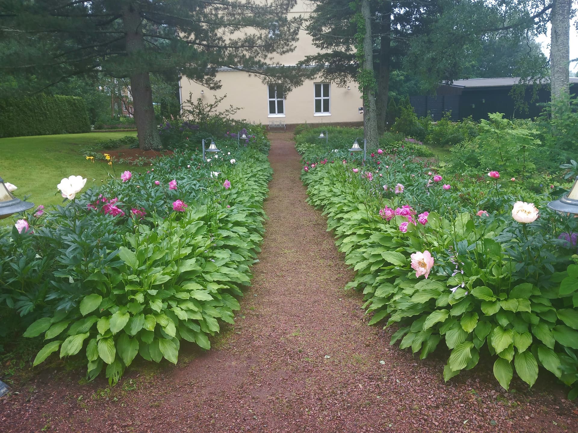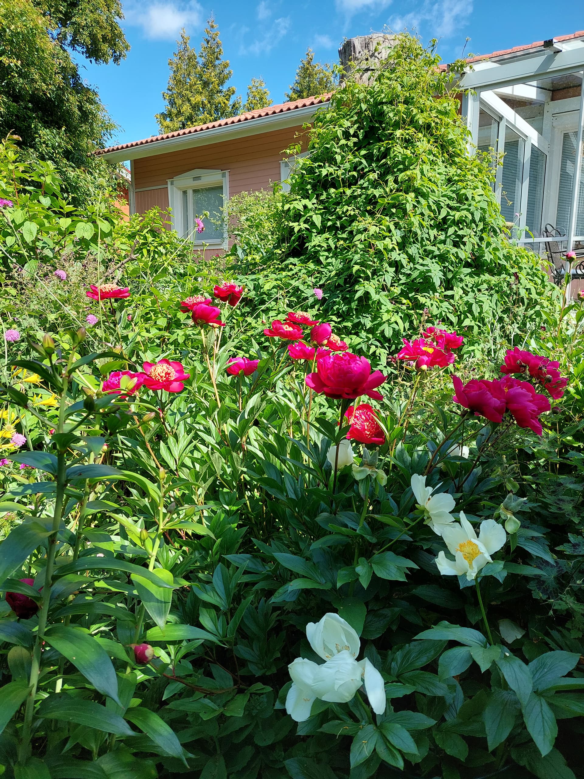 Yhdellä pihalla katseenvangitsija heti portista sisään astuttua oli upea tosi suuri pionipuska