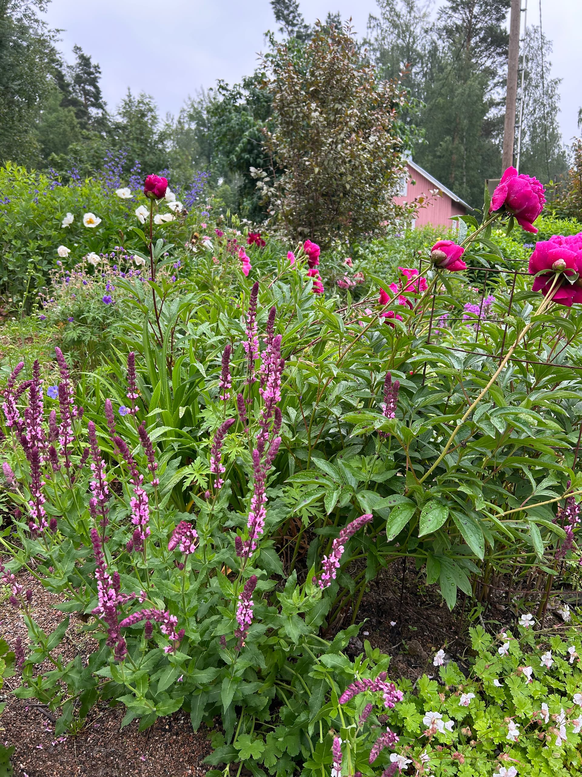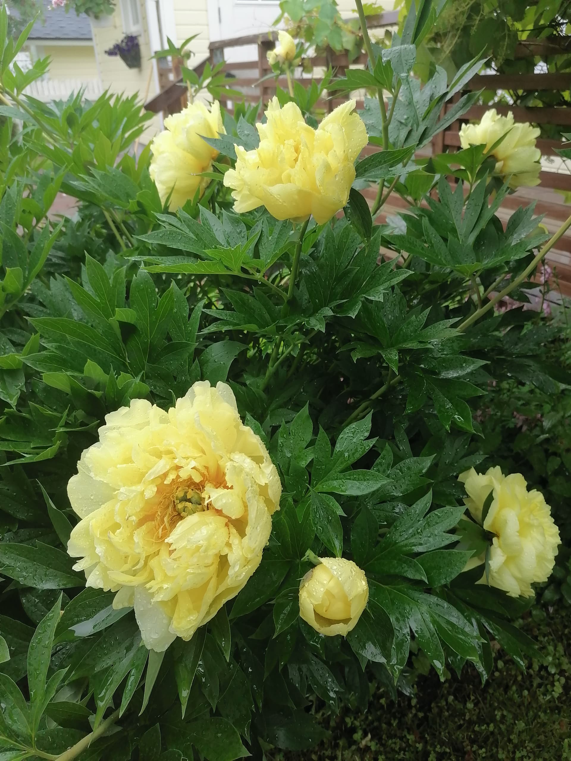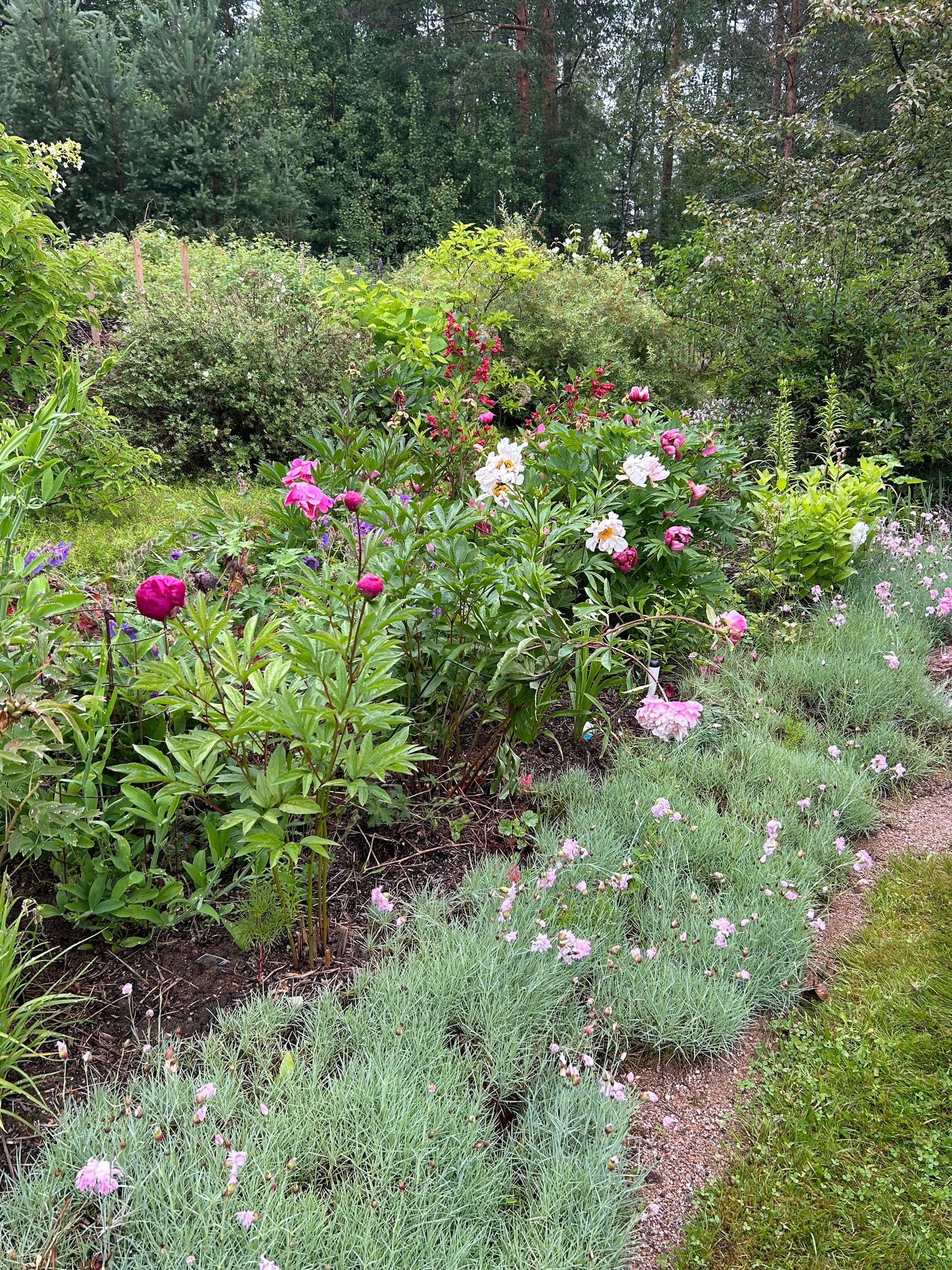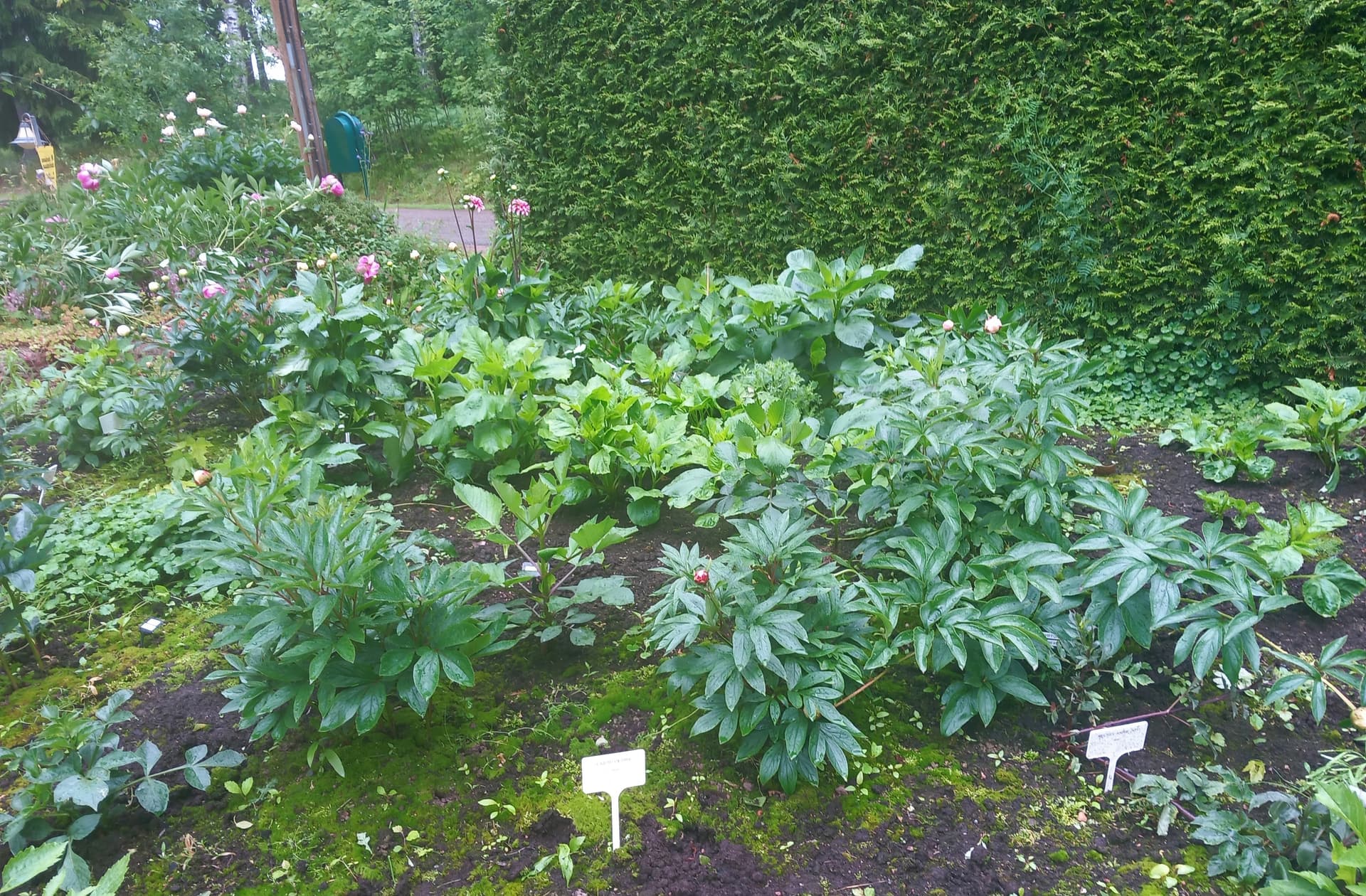 Yhdellä pihalla katseenvangitsija heti portista sisään astuttua oli upea tosi suuri pionipuska