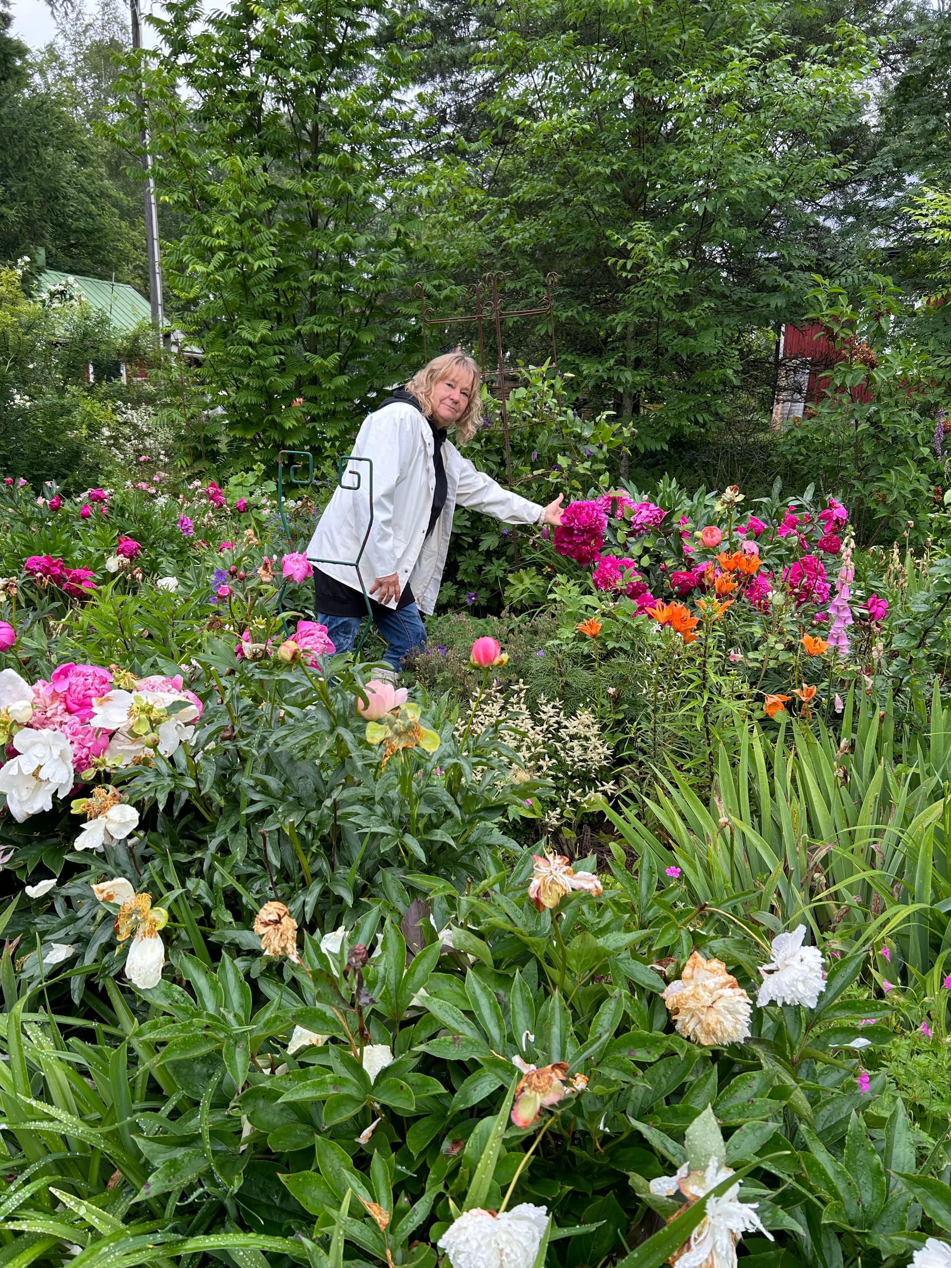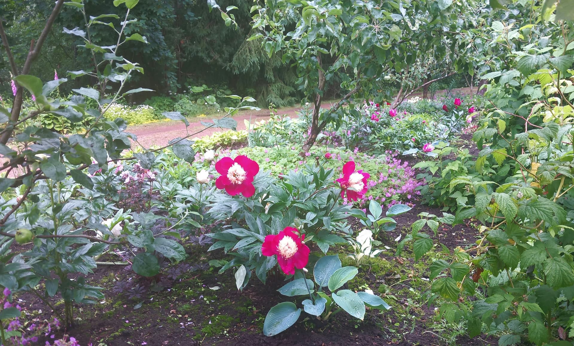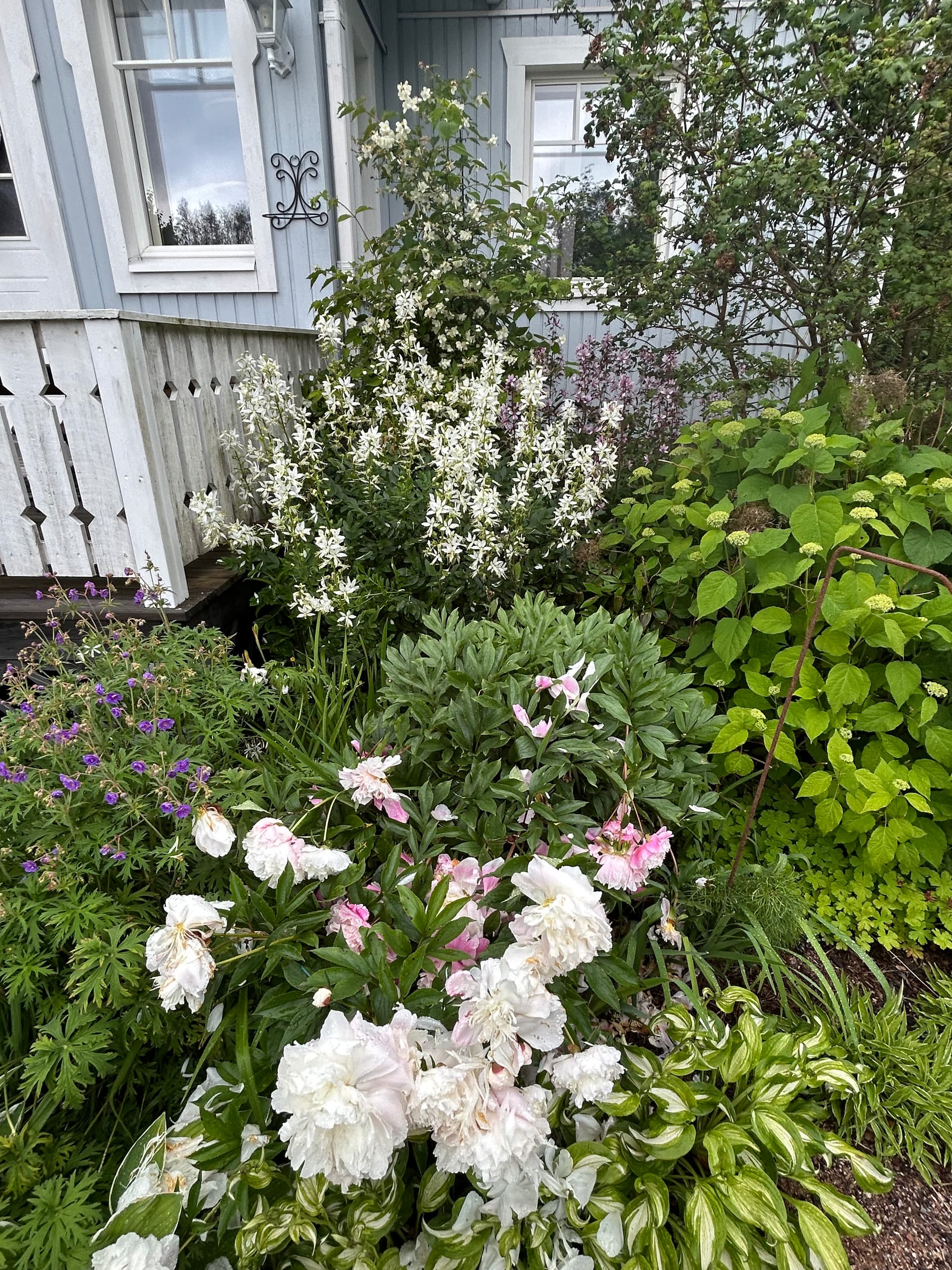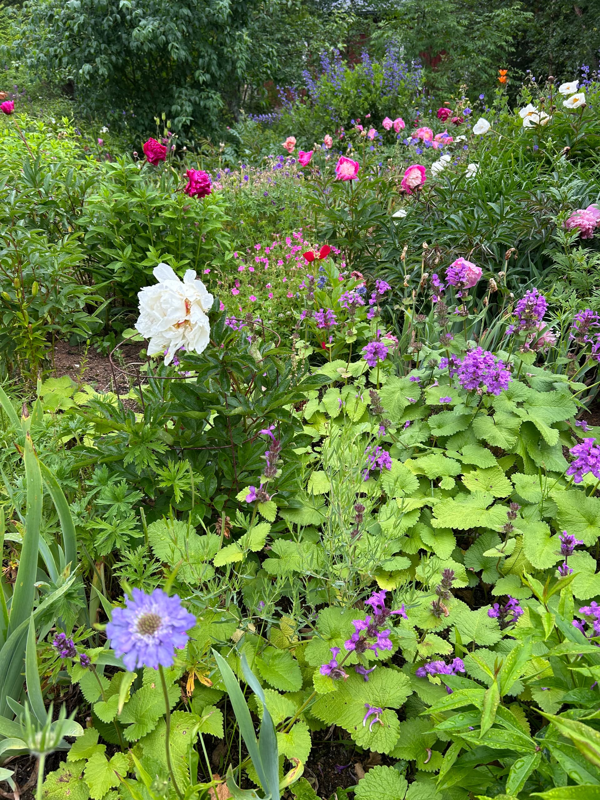Yhdellä pihalla katseenvangitsija heti portista sisään astuttua oli upea tosi suuri pionipuska