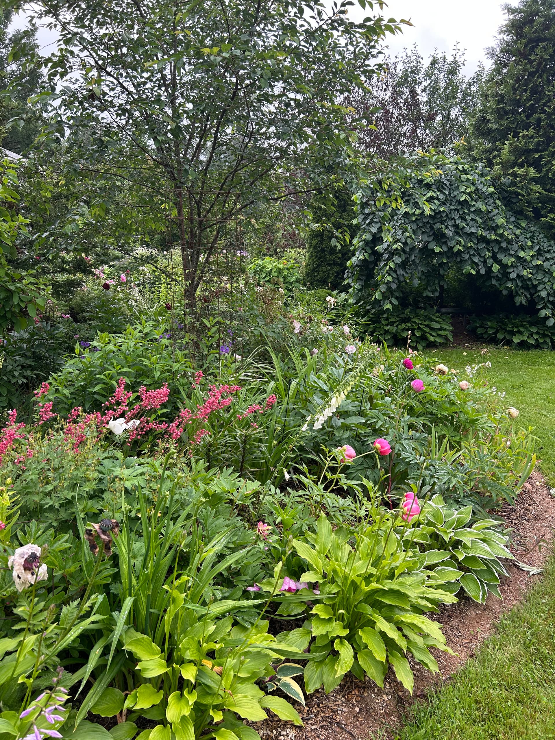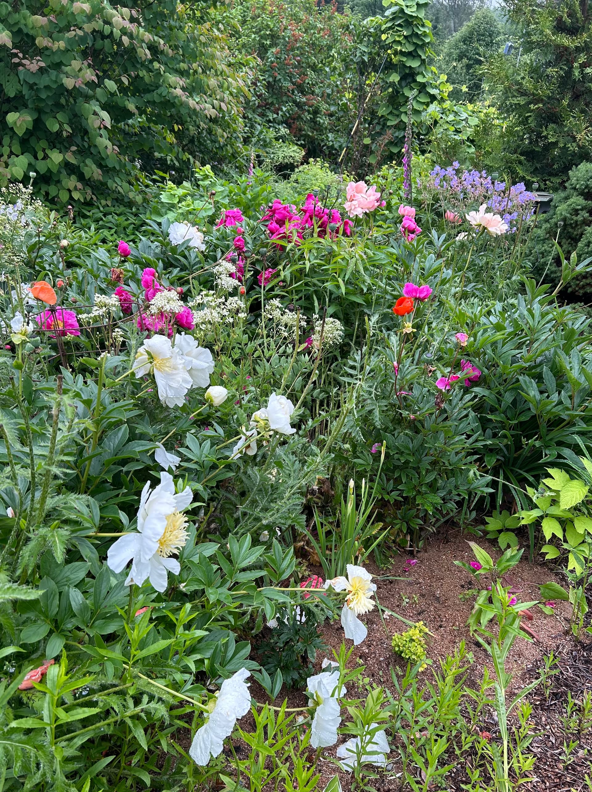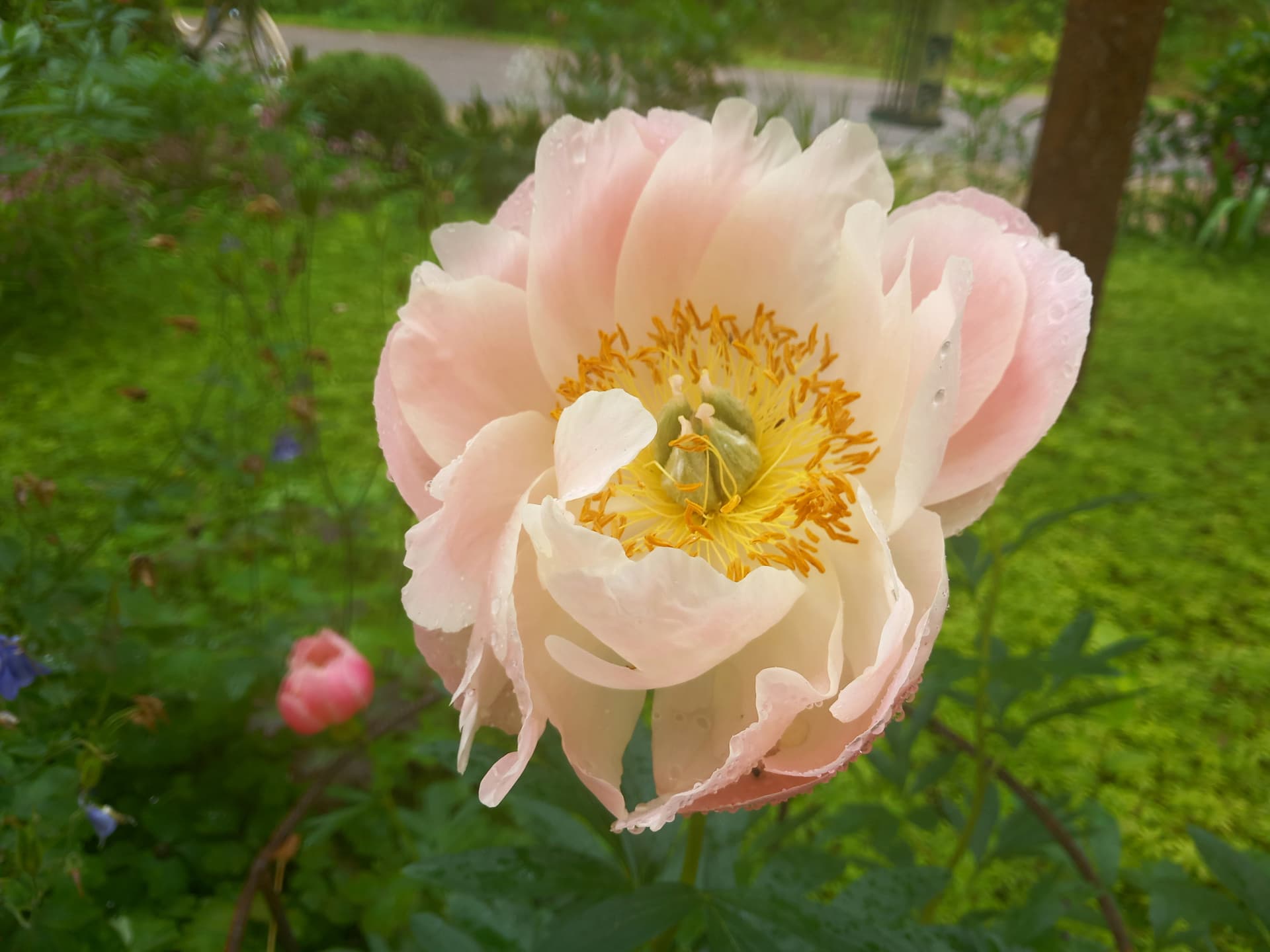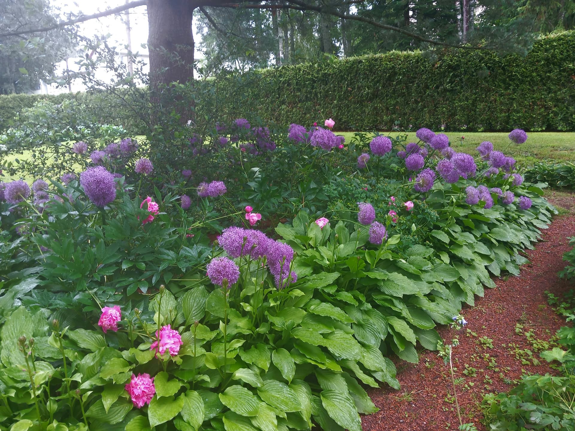 Yhdellä pihalla katseenvangitsija heti portista sisään astuttua oli upea tosi suuri pionipuska
