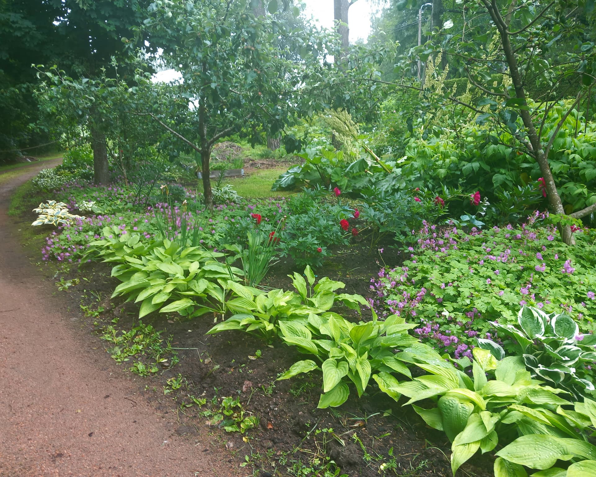 Kurppa on käynyt isolla avoimet puutarhat-pihalla. Mä kävin ryhmäpuutarhapihoilla, ne on n. 500 m2 kokoisia tontteja talo ja vaja vakiona, useissa lisäksi ulkoruokapaikka ja kasvihuone. Ihmeen suuria ja monimuotoisia puutarhoja niissä kuitenkin oli. Löytyi hedelmäpuita, marjapensaita, hyötykasviviljelmiä ja tietty kukkia runsain mitoin.
